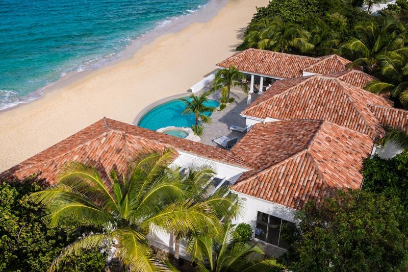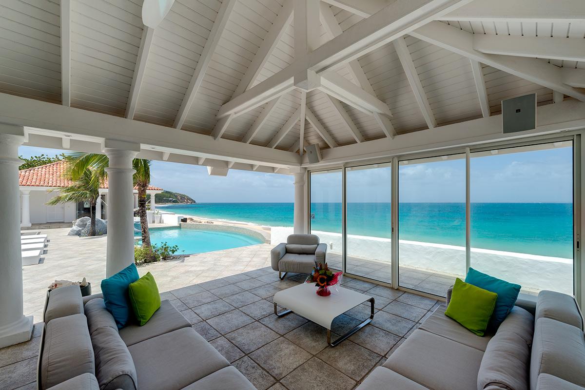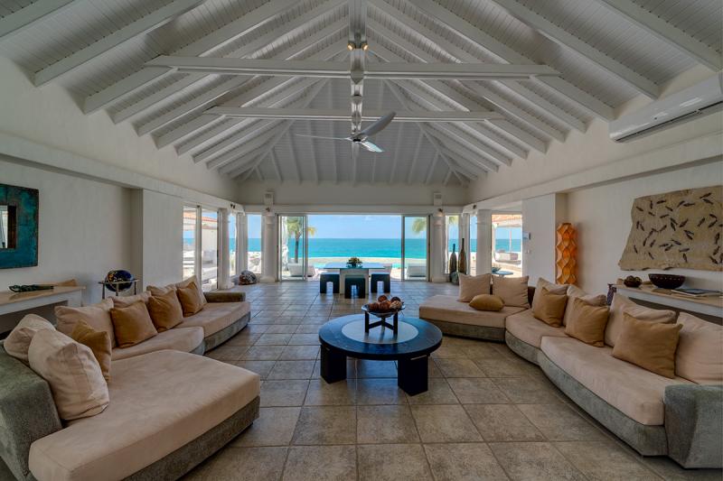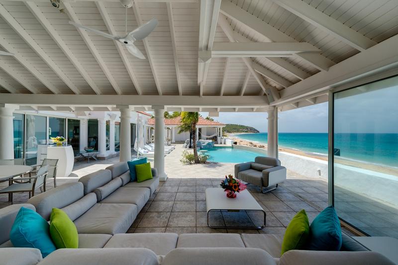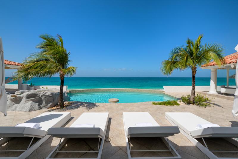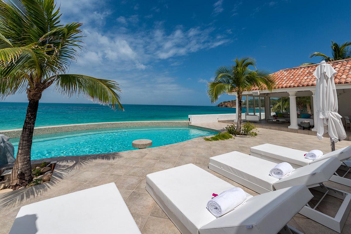 In St Martin, it’s all about the view. Carisa does not disappoint. Stunning sea views flow from every room. The moment you enter this beautiful Caribbean style house, your eyes are drawn from the stylish contemporary interiors directly to the brilliant turquoise sea and the isle of Anguilla. You’re at the water’s edge, separated from the very private beach by a sensual pool with tropical waterfall, natural boulders and relaxing hot tub inset into the sand color travertine terrace.