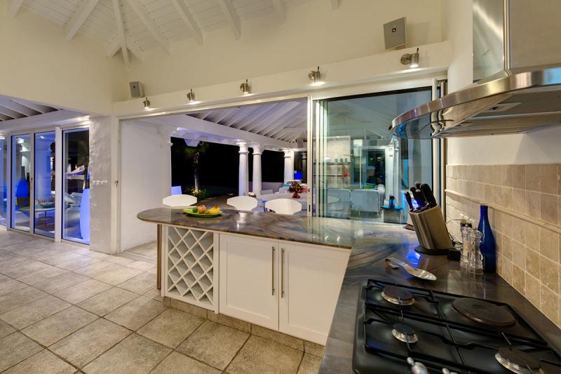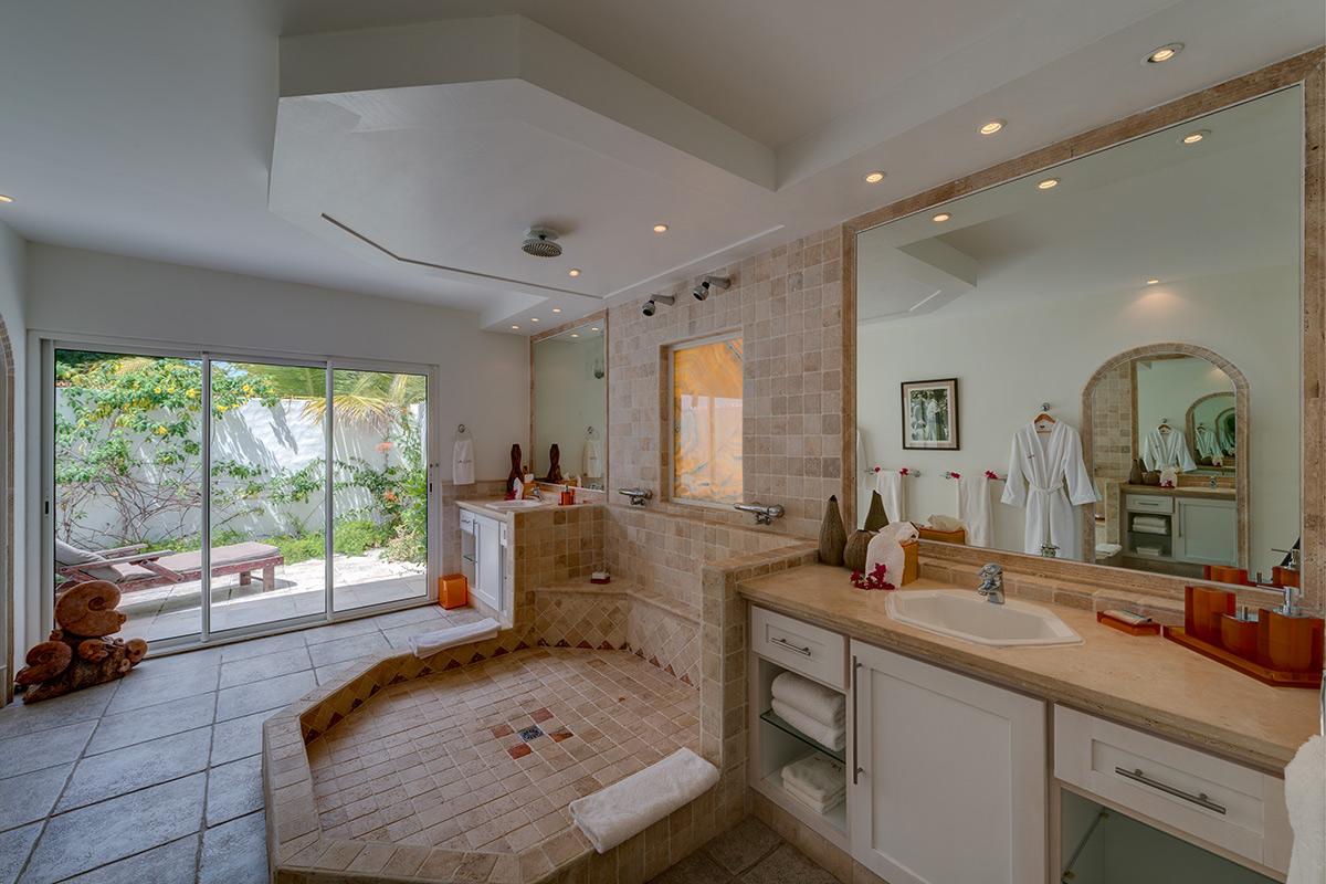 Although the villa is very secluded, you are minutes from fabulous places to dine and shop. Just two minutes away are the new culinary stars, Le Sand, Dreams and Mezza Luna as well as the boulangerie Le Parisienne, the iconic La Cigale and a water sports concession. Five minutes further is the historic French capital of Marigot filled with shops and galleries, excellent restaurants and the Creole Market. You are also five minutes from Puerto Cupecoy, fifteen minutes from the airport, twenty minutes from Grand Case and thirty minutes from Philipsburg. Or simply relax, hire a private chef and never leave the villa