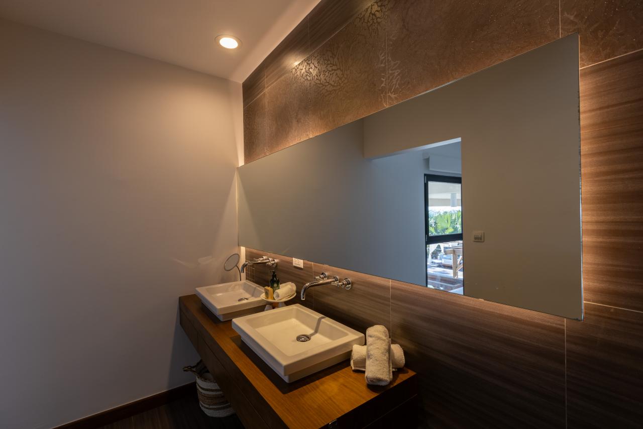 Timber and stone are featured throughout the villa: on the walls, the furniture and in the unique decorative elements. Decorations are made of earthy colors with touches of gold and emerald green. The villa successfully combines modern style and natural elements affording guests the opportunity to share beautiful moments in style while never forgetting the natural beauty that surrounds them.