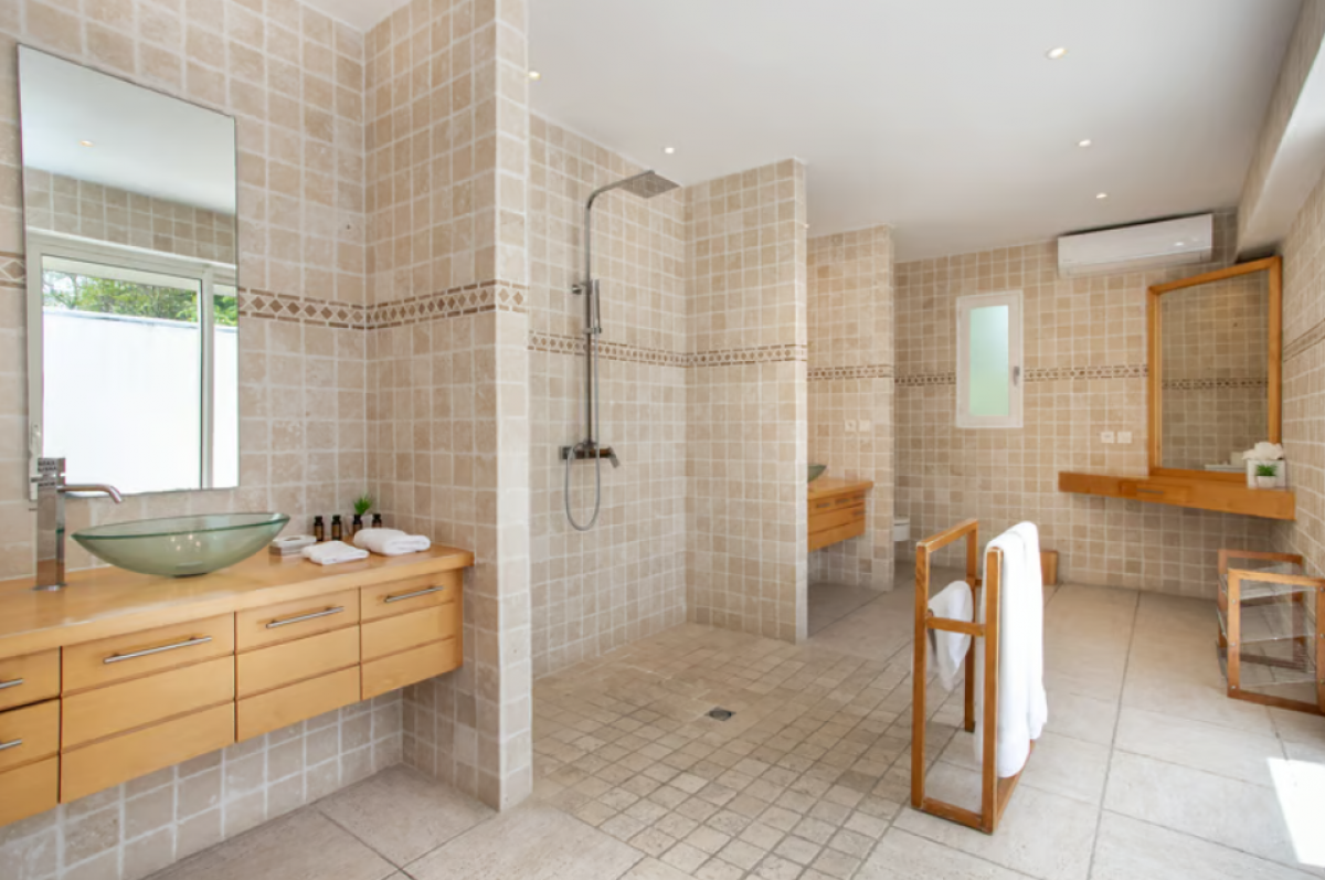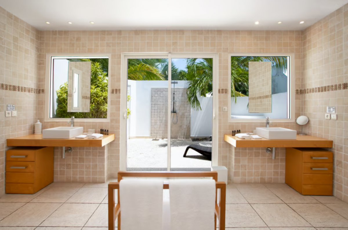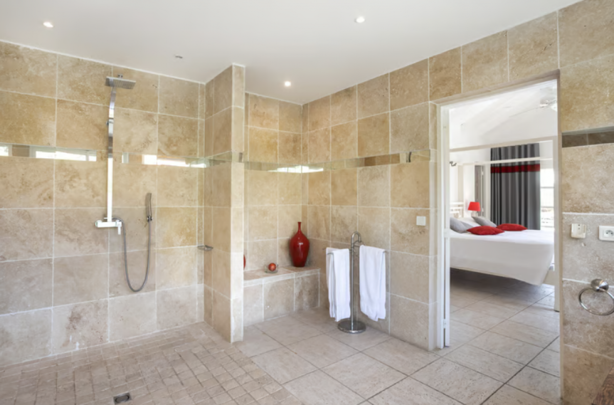 You are secluded, yet close to amenities. The fabulous restaurants and food purveyors in Baie Nettle are a few minutes’ drive. You are 8 minutes to the French capital of Marigot, with its shops, restaurants, markets and galleries and 10 minutes to the airport. Grand Case and Philipsburg are 30 minutes away.