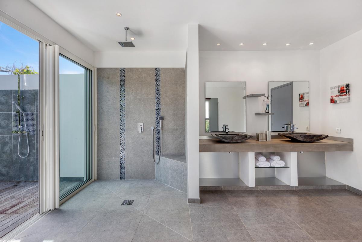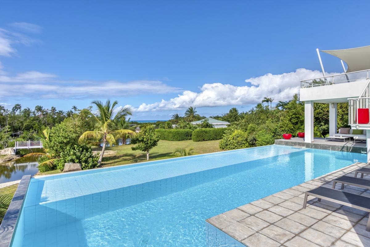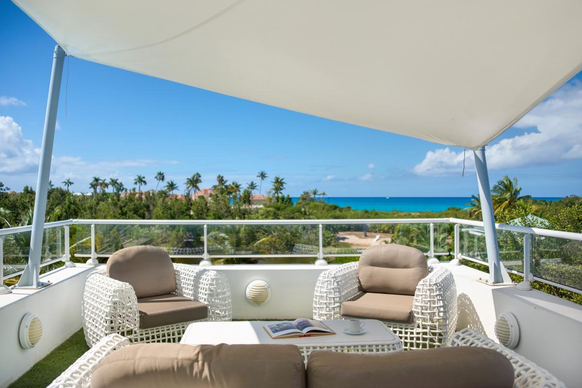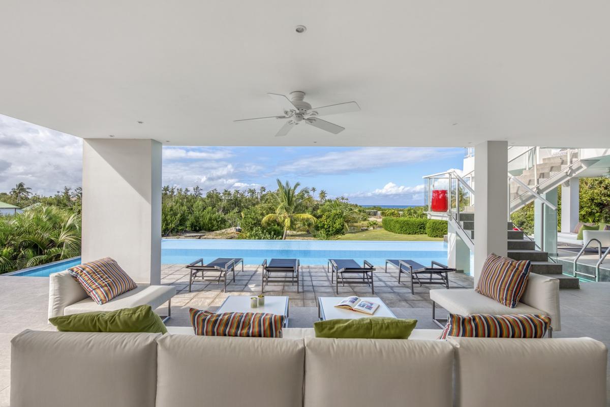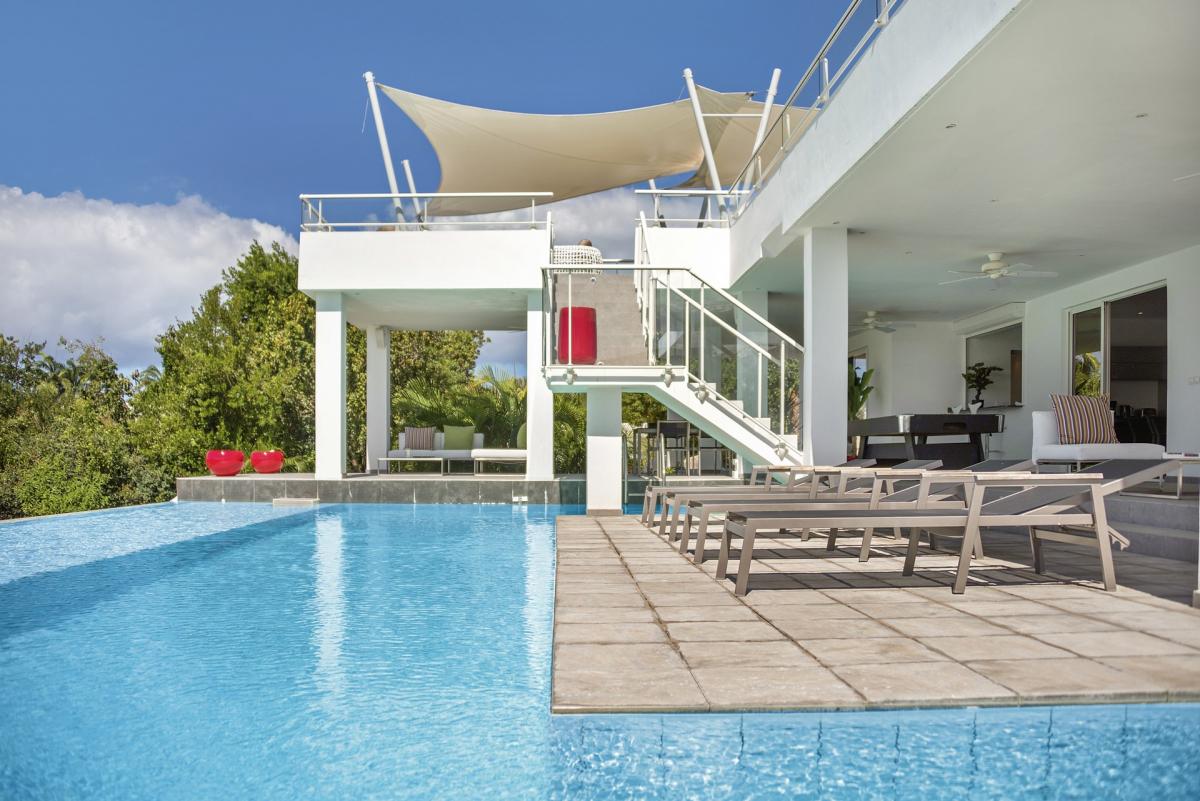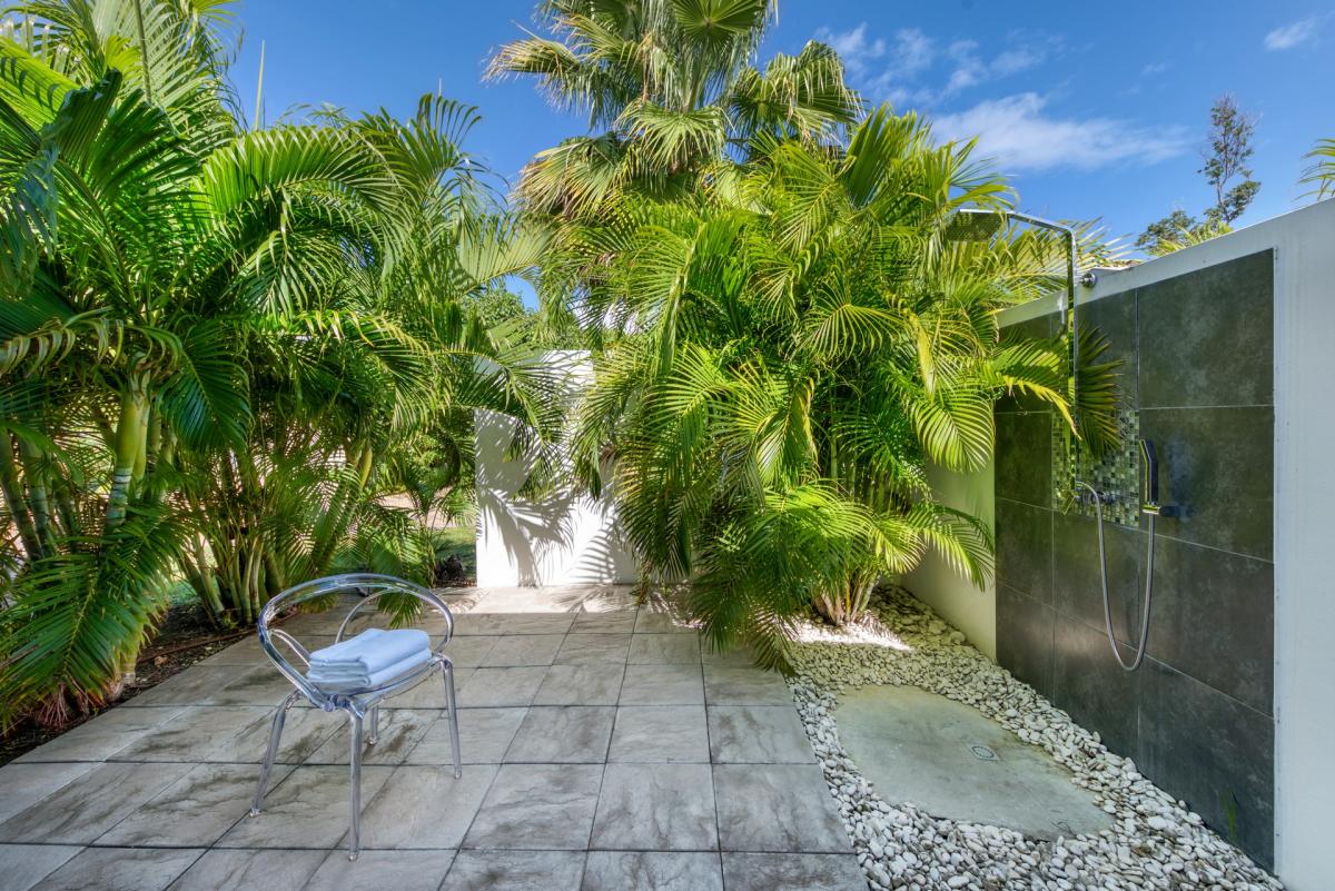 Grand Palms is a sleek contemporary villa is perfect for individuals seeking serene privacy, yet walking distance to the beach. Set in a palm filled garden, the elegant lines of the house draw you to the calming view. Green tropical foliage edged with the sapphire rim of the sea creates a peaceful atmosphere. This is a space to relax with a book or glass of champagne and totally forget the world. While great for small families and groups of friends, it’s perfect for honeymoon couples. It has an intimate and romantic feel.