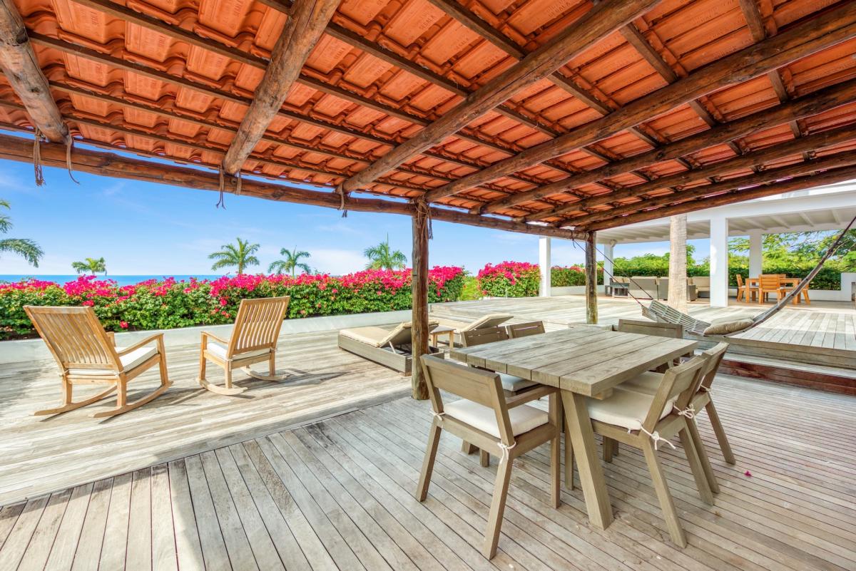 Beautifully designed gardens surround the house and terraces. Epi wood decks on multi levels offer endless options for dining, lounging and sunning. You can be private or together with your friends or family. The upper deck flows off the main indoor living area. Under wide covered gazebos, you can lounge, dine or fire up the barbeque. Step down to the gorgeous lower level for a swim in the inviting pool surrounded by covered terraces and sundecks. There is a separate kid’s playground for the young ones.
