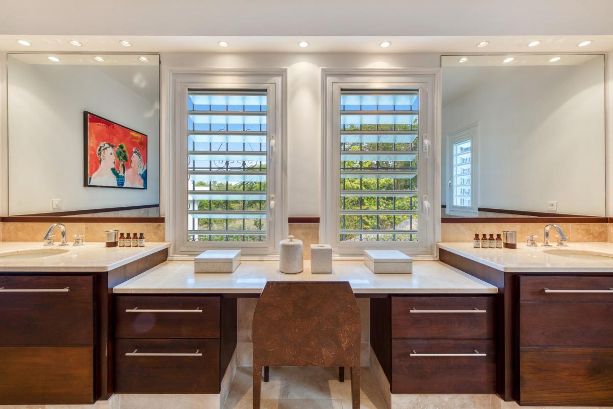 Although secluded, you’re close to amenities. Long Bay Beach and Cupecoy Beach are only 2 minutes away. It’s also a short drive to Porto Cupecoy for grocery shopping, restaurants including island favorite Mario’s Bistro. 5 minutes in the opposite direction you’ll find Baie Nettle’s new culinary stars; Le Sand, Dreams and Mezza Luna. Another 5 minutes from here and you reach the charming French capital of Marigot with restaurants, shops and galleries, historic buildings and the Creole Market. Drive 25 minutes to Grand Case or Philipsburg’s shopping haven while only a 10-minute drive to the international airport.
