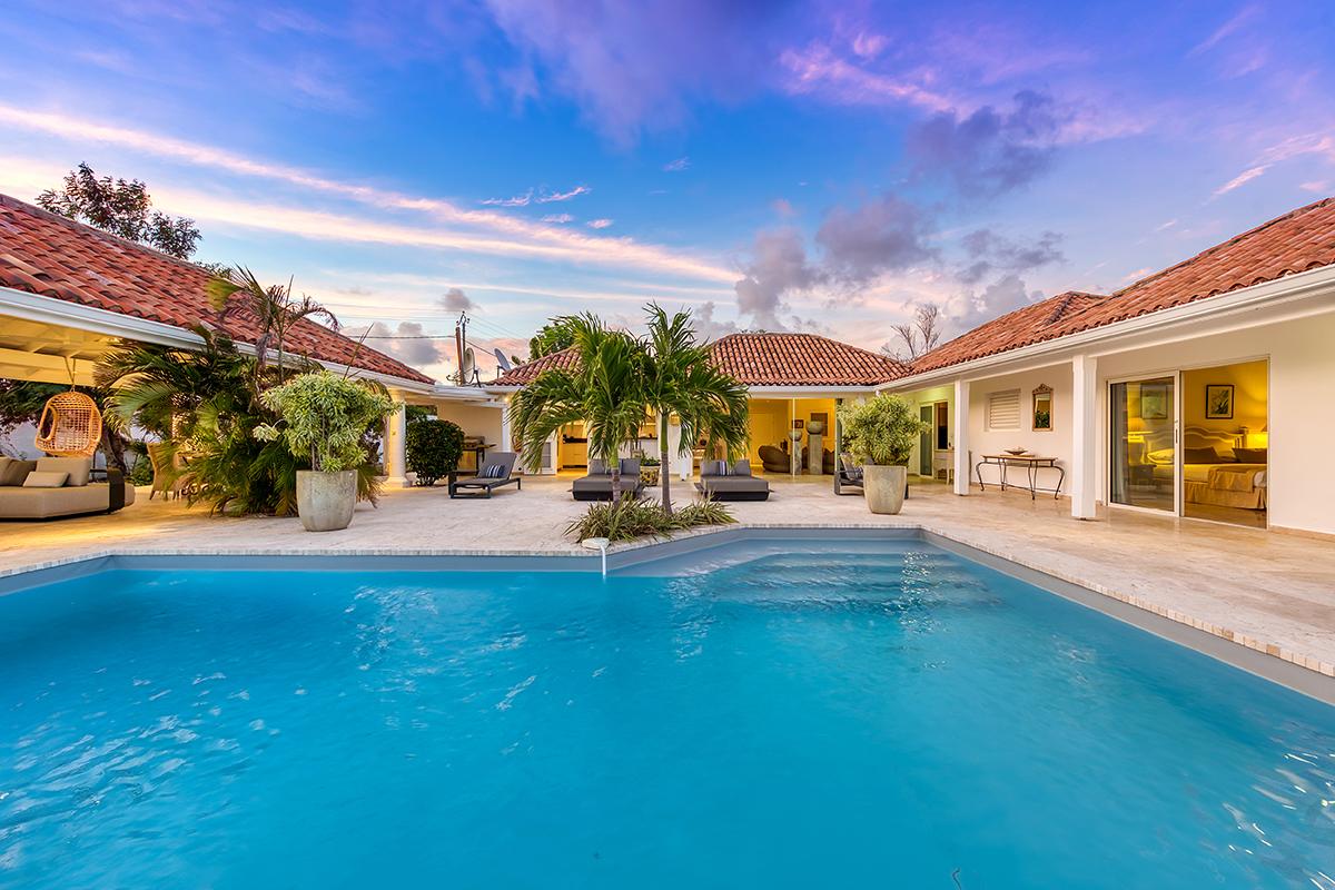 This charming Creole style villa is a peaceful oasis set in a lush and colorful tropical garden. The view combines iconic Caribbean elements; swaying palms, beautiful foliage and glimpses of the sapphire sea. Whether you are relaxing inside or lounging outside, it is beautiful, private and poetically romantic. It is also a versatile villa. You can rent it alone for a honeymoon or cozy getaway. For larger gatherings, it can be rented along with its sister villa, La Pinta, to expand capacity. The two villas also share a tennis court and gym. This self-contained paradise is a wonderful place to simply shut the door on the world.