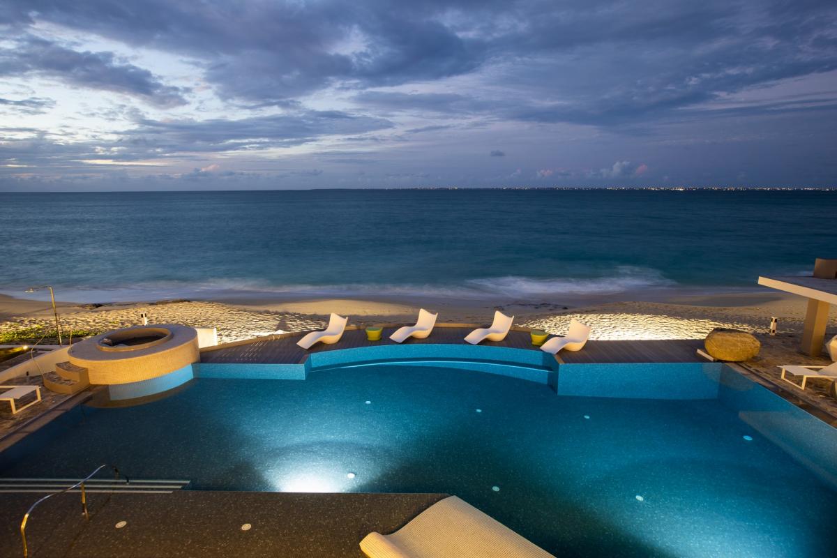 Villa Le Reve is a magnificent 7 bedroom St Martin vacation home in the exclusive gated community of Baie Rouge with spectacular interiors. All 7 bedrooms have an ocean view and an ensuite bathroom The two master bedroom suites and 4 family bedroom suites open to the spacious heated pool, Jacuzzi and gazebos. One additional bedroom is located in a separate wing.