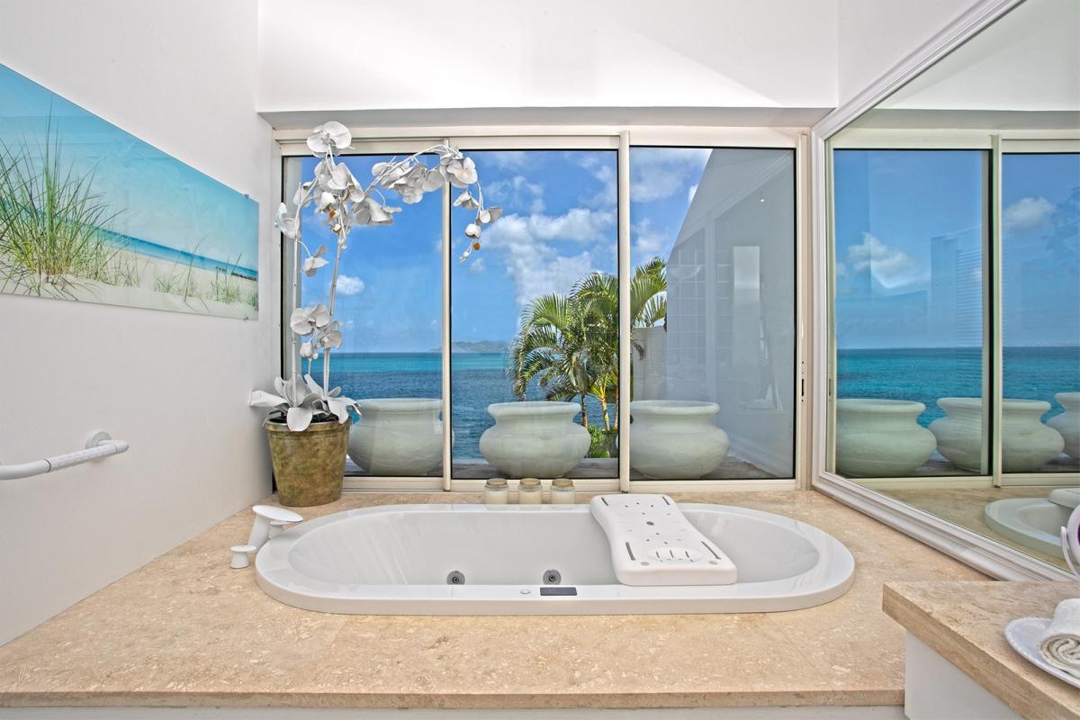 Of the six bedrooms, all have ocean views and en suite bathrooms, and three are master suites. Each of the six bedrooms is equipped with a king-size bed, ample closet space, a TV, a safe, and wifi.