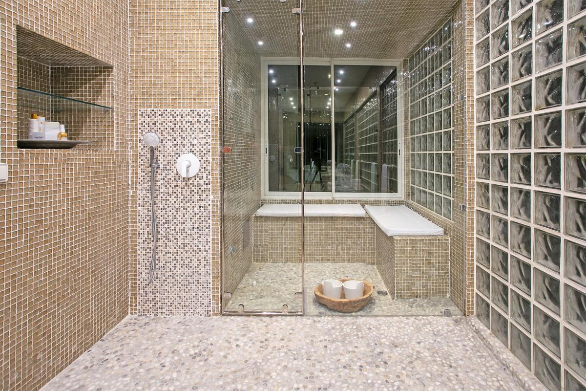 Guests can descend from the pool terrace to the white sandy beach which also has a pool, a shaded gazebo, seating area, daybeds and parasols furnishing the shoreline.
