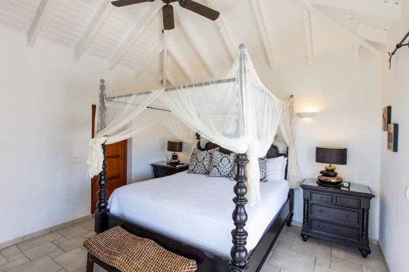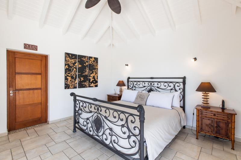 Bedroom 2: This room is equipped with a king-sized bed, an ocean view, a fan, air conditioning, and an ensuite bathroom.