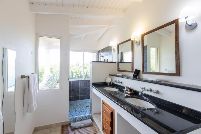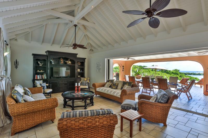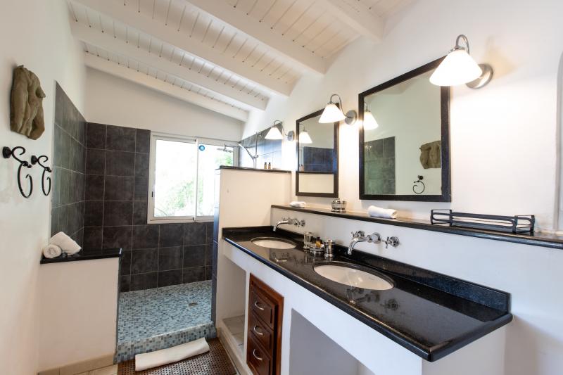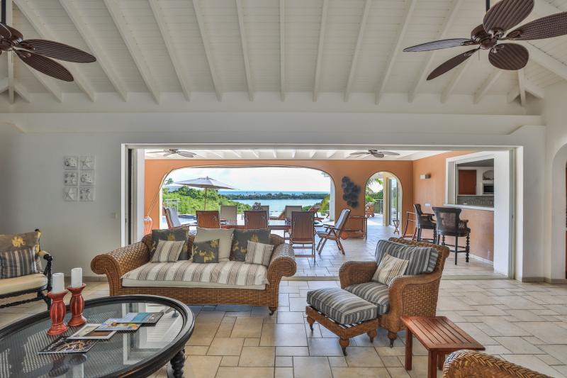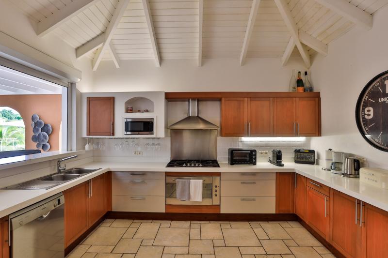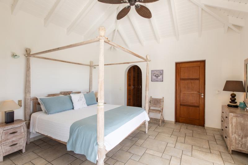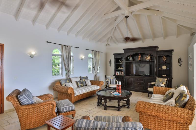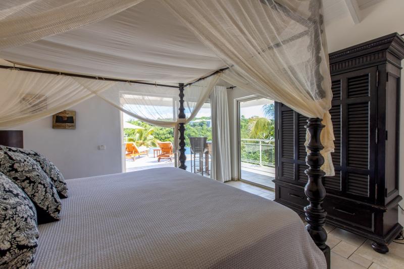 The deliciously comfortable living room and large adjoining gourmet kitchen open onto the spacious covered terrace and dining area so guests can enjoy the beautiful ocean views. All 4 bedrooms at Sea Vous Play have en-suite bathrooms and air-conditioning and open out onto the pool terrace. The bedrooms are equal in size and standard and have king-size beds with the exception of one that has 2 single beds. Further details that add to the quality this vacation rental in St. Martin include the living room with 40” flat screen TV/DVD with US satellite channels, outdoor CD player system, cathedral ceilings, wifi Internet connection, and a south facing pool.
