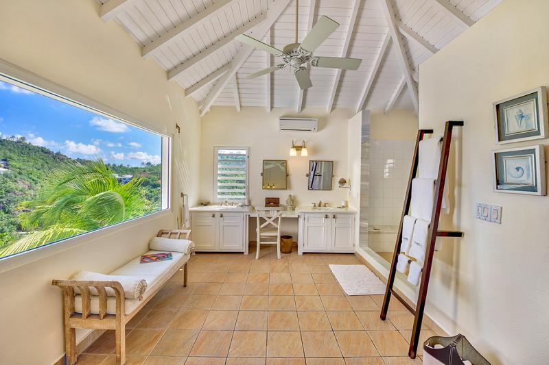- Bedroom 2: King bed, private bathroom with shower, AC, ceiling fan, TV