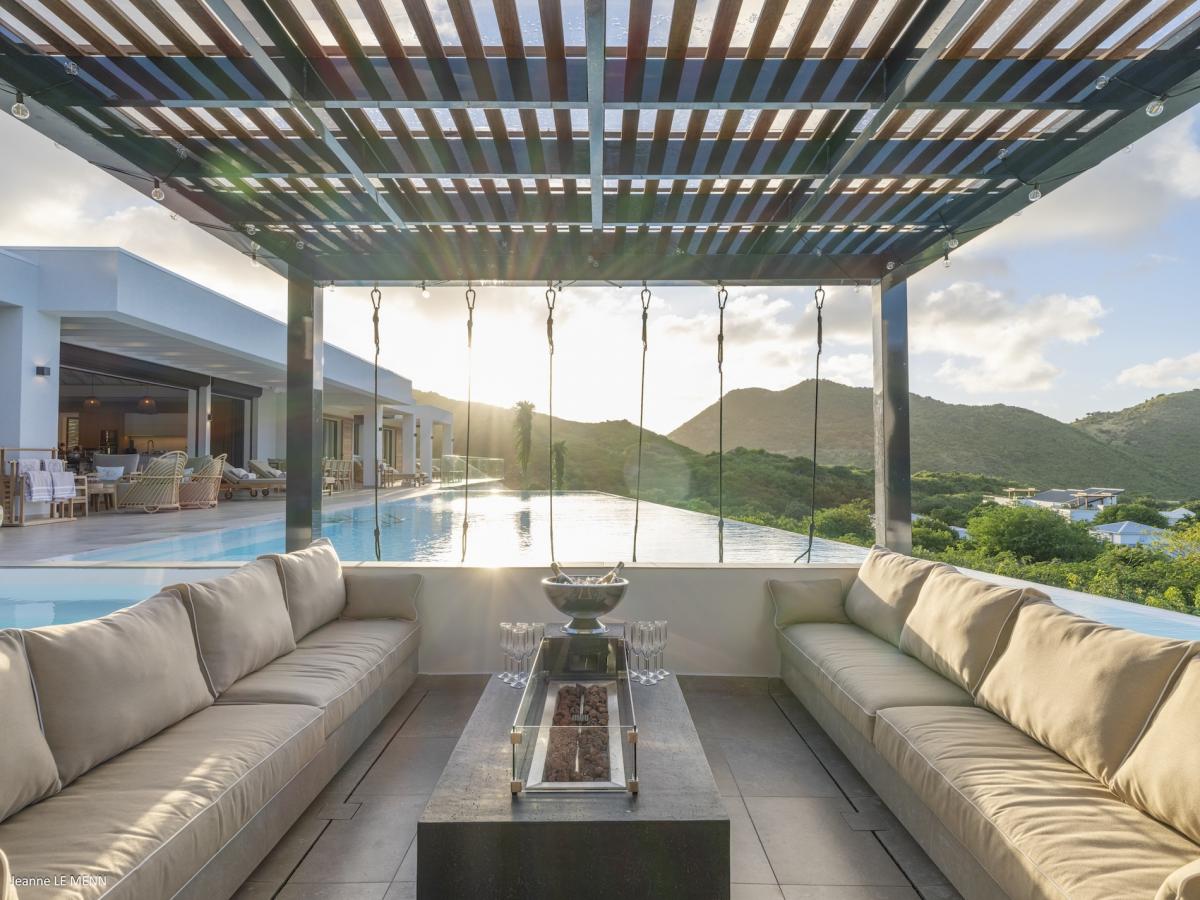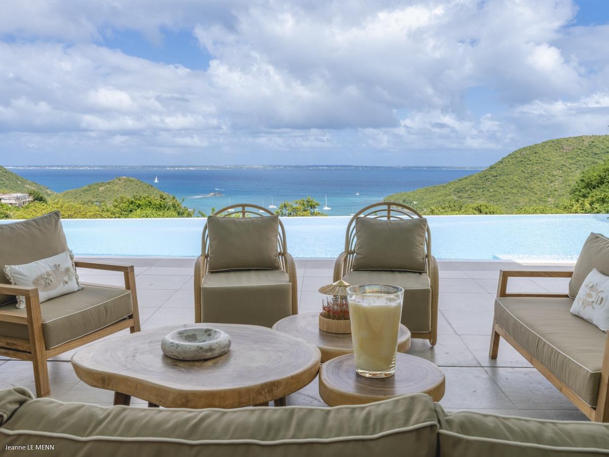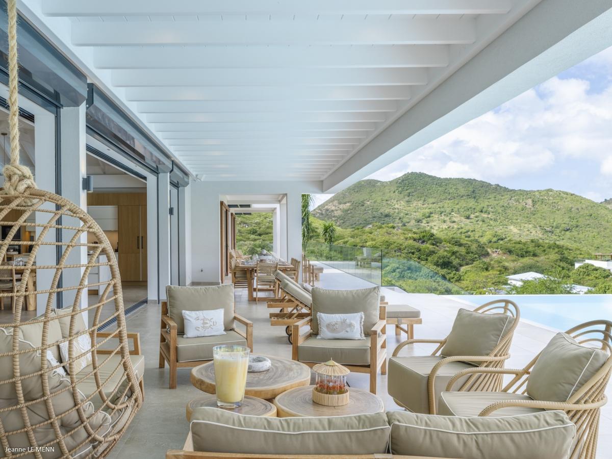 Villa Abaca is an exceptional St Martin villa rental nestled in the heights of Anse Marcel. It is a stunning five-bedroom residence offering breathtaking ocean views and seamless indoor-outdoor living. This luxurious St Martin villa features an expansive living room that connects to an infinity pool, creating a harmonious space filled with natural light.