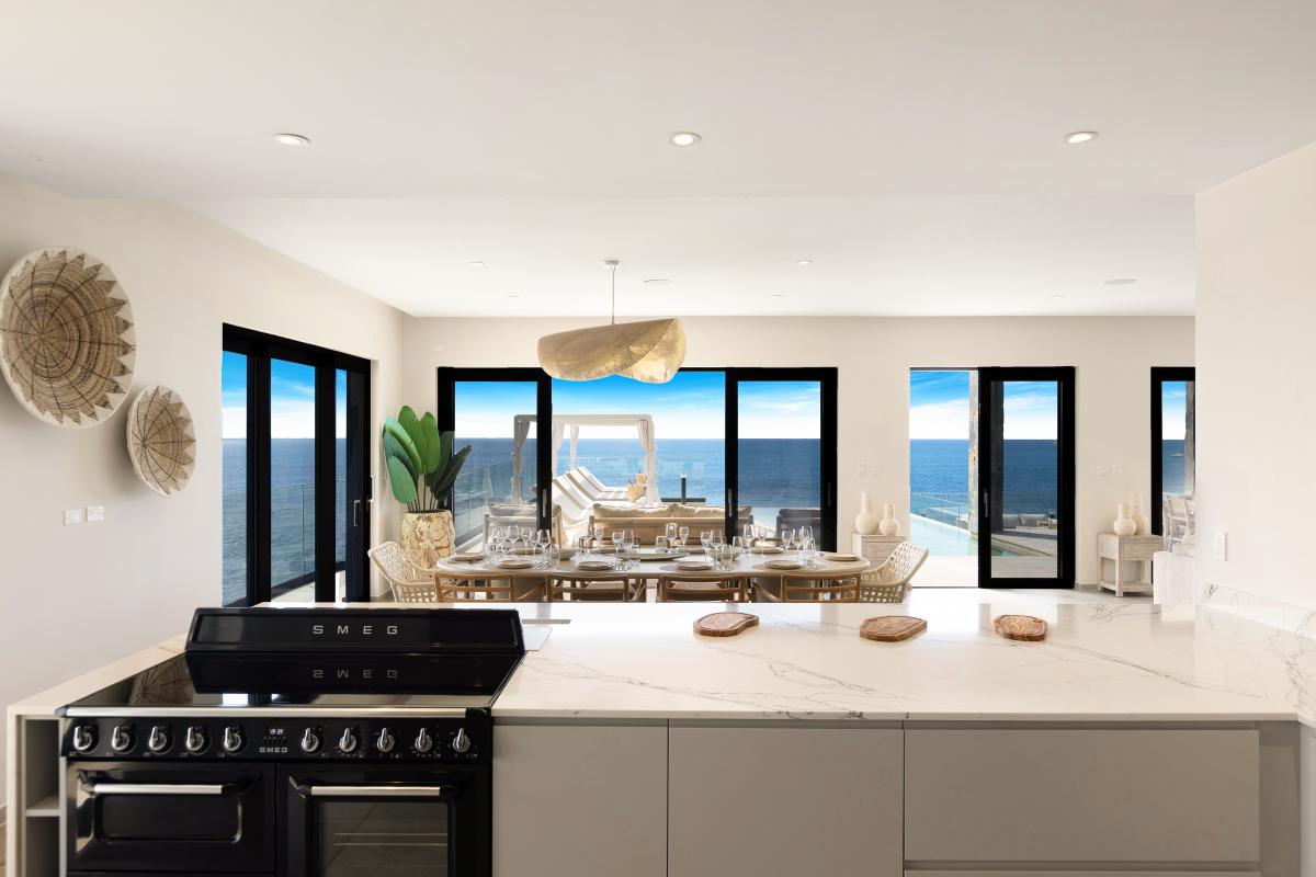 Villa Aqua Vista is a 6-bedroom, multi-level St. Martin villa rental near Indigo Bay. This villa offers sleek lines and sophicated architecture with minimalist design and modernity. With expansive windows and an open-concept, panoramic views of the Caribbean Sea highlight the beauty of this location. The six bedrooms are designed to deliver comfort and tranquility using neutral hues and top-tier furnishings, complementing the villa's contemporary aesthetic.