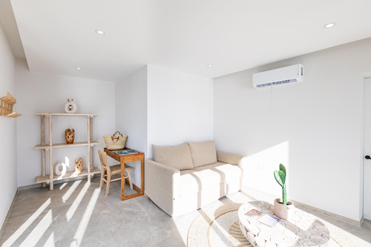 Bedroom 1: King-sized bed, an ocean view, air conditioning, a TV, a safe, and an ensuite bathroom.