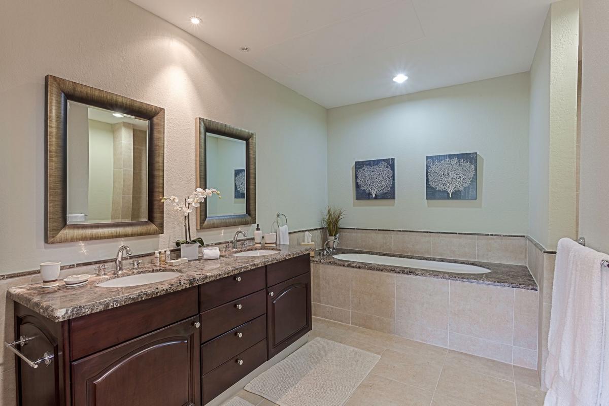 Villa Corfu is a spacious penthouse rental in St. Martin located in Porto Cupecoy. This rental has 3 bedrooms each with their own full ensuite bath and an additional half bath in the main living area.