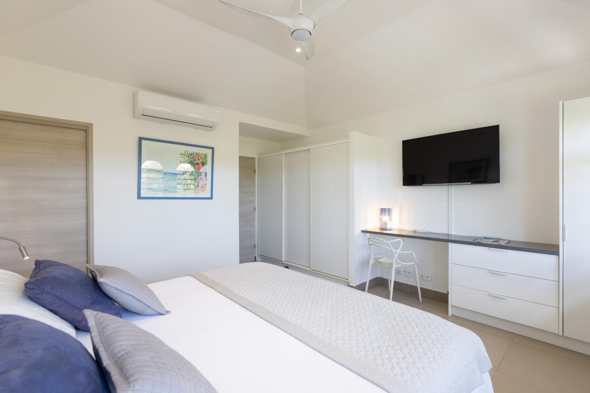Bedroom 4: This room is equipped with a king-sized bed, a garden view, air conditioning, a TV, a DVD player, a safe, and an ensuite bathroom.