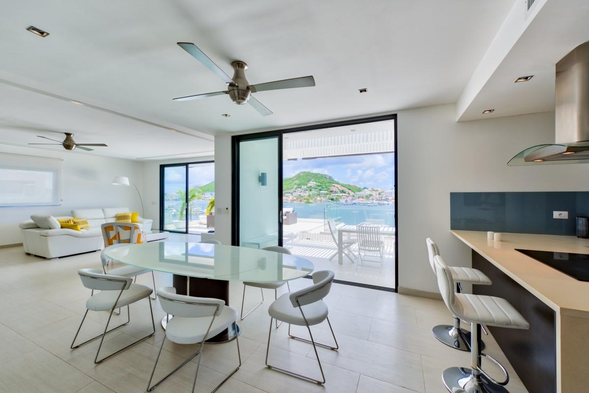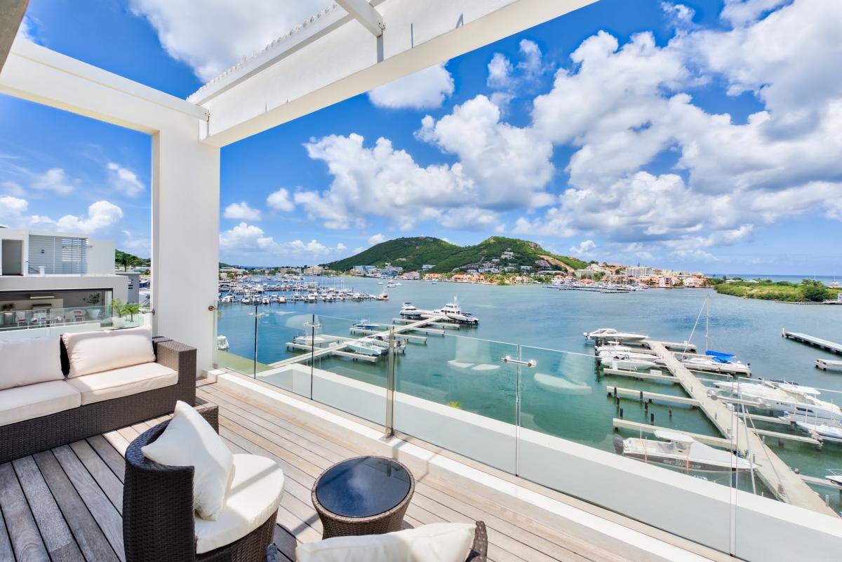 Villa Just Blue is a modern penthouse with a spectacular view of Simpson Bay Lagoon and the Caribbean Sea. Add some sparkle to your view day or night with the moored yachts in the marinas.