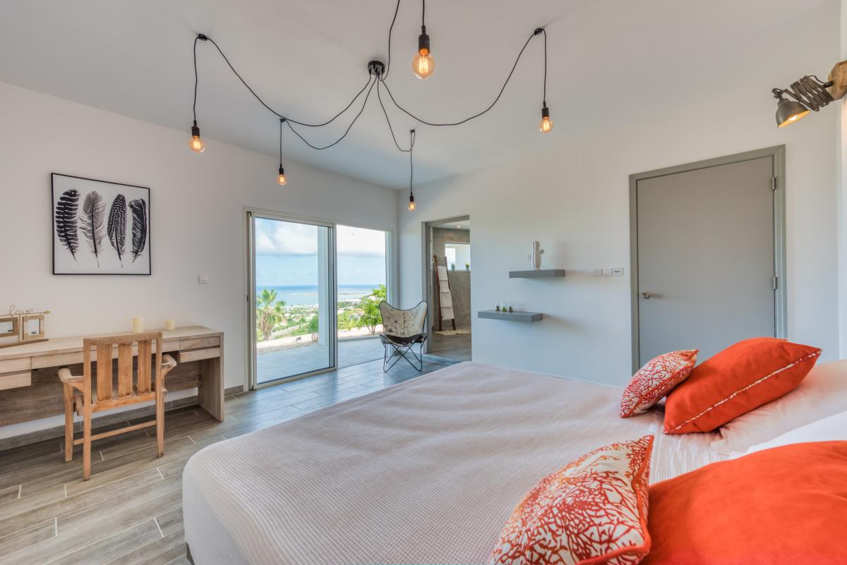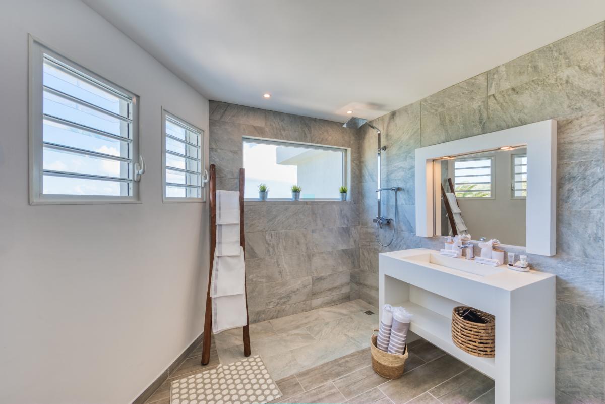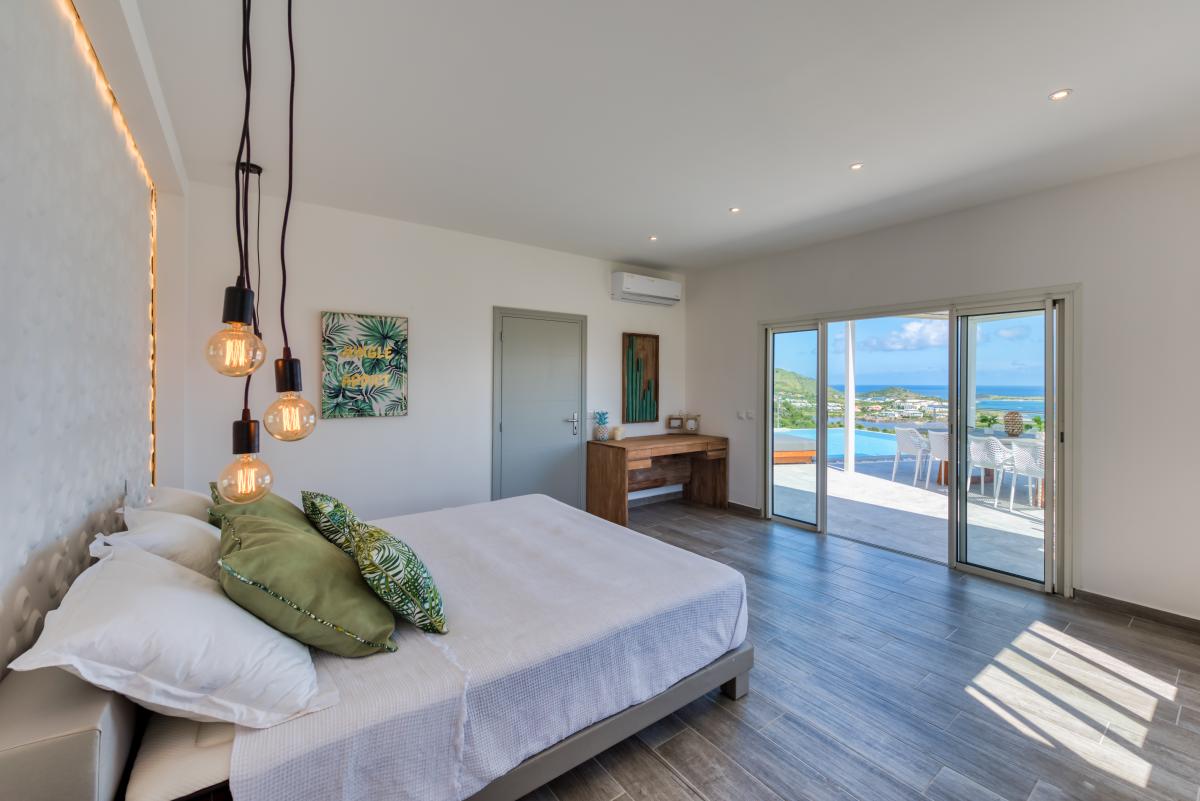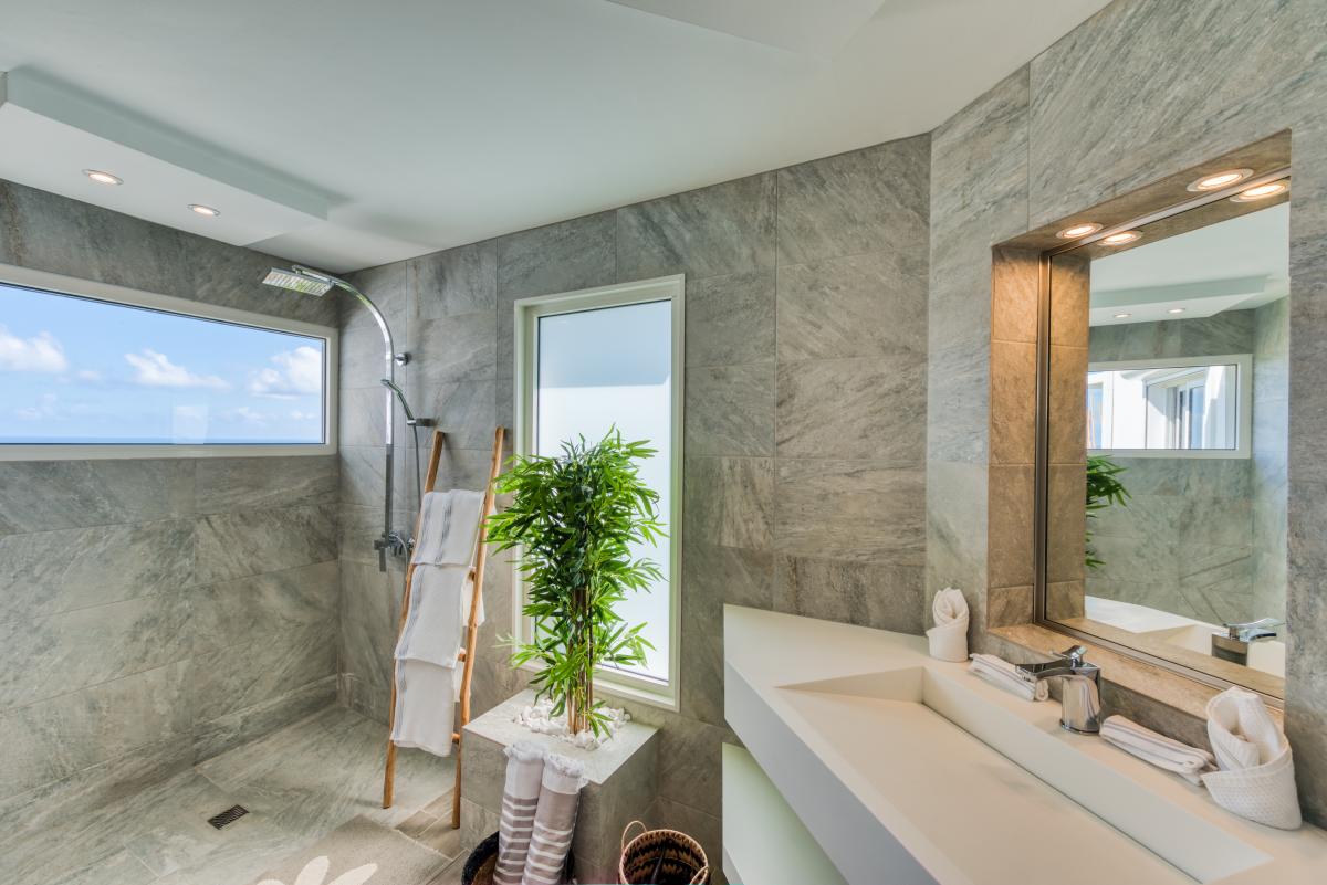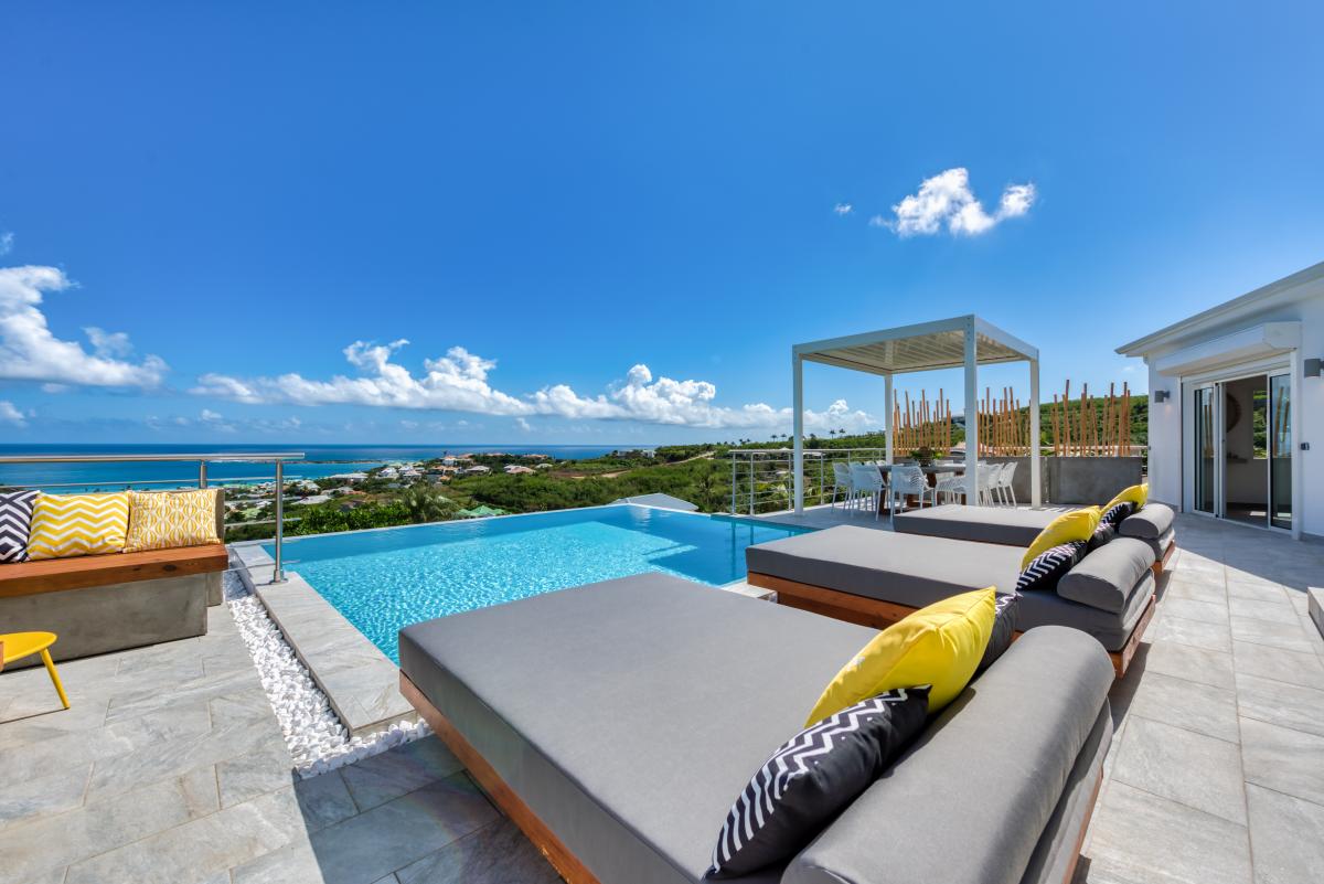 Villa Topaze is a gorgeous home located in Orient Bay in St. Martin. This St. Martin villa has three bedrooms, all with an ensuite bathroom. This villa is equipped with beautiful views of the ocean and the islands of Pinel and Tintamarre. This modern and contemporary property has indoor access to the bedrooms, a well-equipped gym with a view, and a pool.