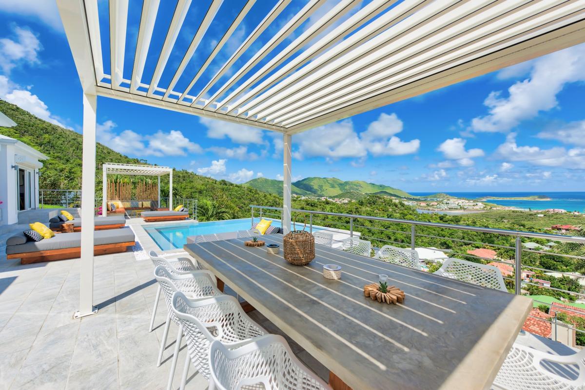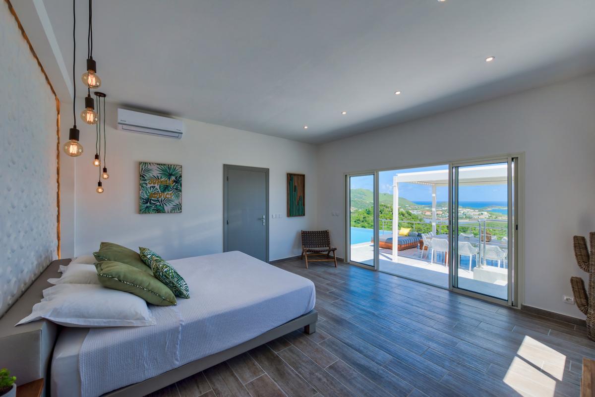 Welcome to Villa Turquoze, a contemporary retreat offering breathtaking views of the turquoise sea and the islands of Pinel and Tintamarre. This luxurious St. Martin villa features four bedrooms and four bathrooms, providing ample space and comfort for your stay.