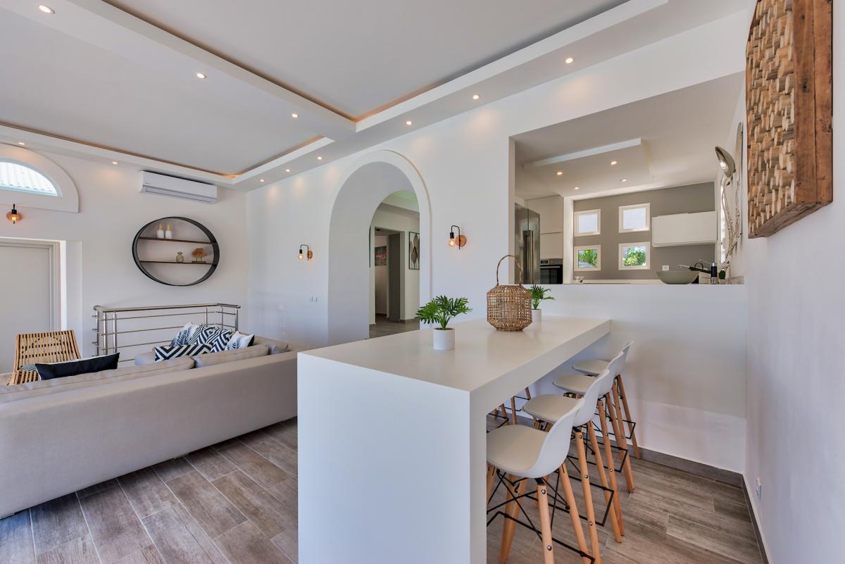 The villa offers indoor-accessed bedrooms, ensuring both convenience and privacy for all guests. With air conditioning throughout, you can enjoy a cool and comfortable environment during your stay. Additionally, this St. Martin villa rental includes a well-equipped gym with a view, allowing you to maintain your fitness routine while taking in the stunning surroundings.