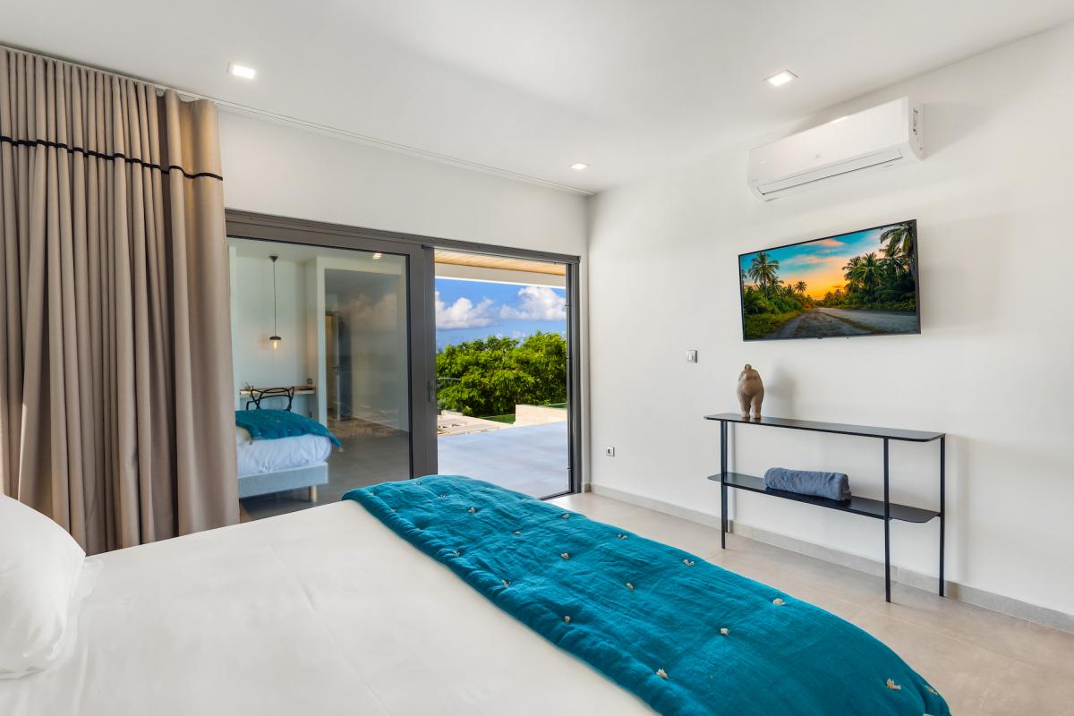 Bedroom 5: This room is equipped with a king-sized bed, an ocean view, air conditioning, a TV, a safe, and an ensuite bathroom.