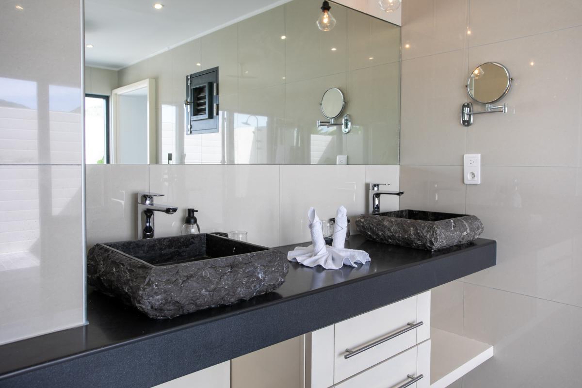 Villa Z'Abricot is a modern home located in Orient Bay in St. Martin. This gorgeous St. Martin villa has six bedrooms, four bathrooms, a gym, a barbecue area, a pool, and a bocce ball court. The villa is only five minutes by car from the beaches and activities in Orient Bay.