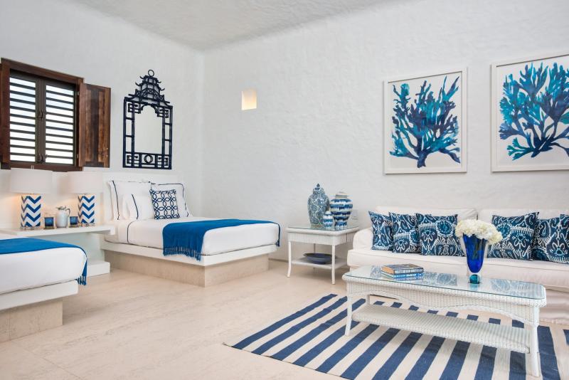 Bedroom 4: 2 Double beds, en suite bathroom with shower and tub, AC, ceiling fan, flat screen TV, safe, telephone, window screens, private terrace, walk-in closet