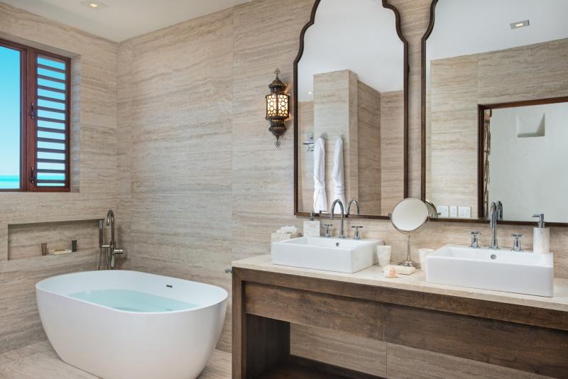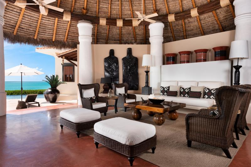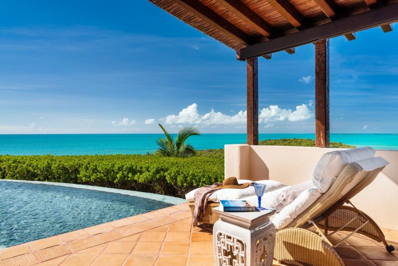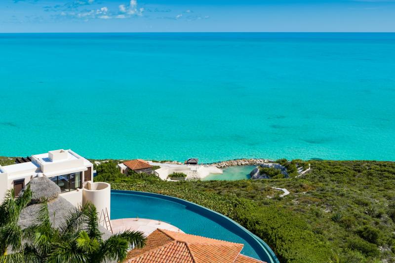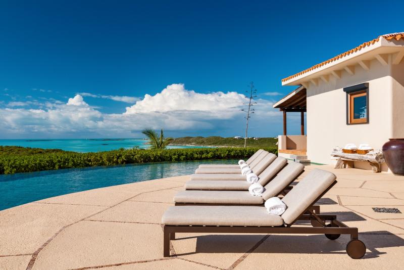 Bajacu is a truly amazing six bedroom Turks and Caicos villa surrounded by an 11 acre estate of lush tropical gardens with coconut, royal palm, fruit trees, bougainvilleas, jasmine, and frangipani. Bajacu is perched on a hilltop and offers direct access to the sea. One of the highlights of this gorgeous Turks and Caicos villa is the layout of two spectacular infinity swimming pools cascading into one another and merging seamlessly with the sea. The larger of the two pools leads directly from the master bedroom, curves around the spacious sun deck, and culminates at the foot of the pergola. Bajacu is for the privileged few who demand only the best. This unique Turks and Caicos villa retreat offers uncompromising romance, luxury, beauty, and serenity.