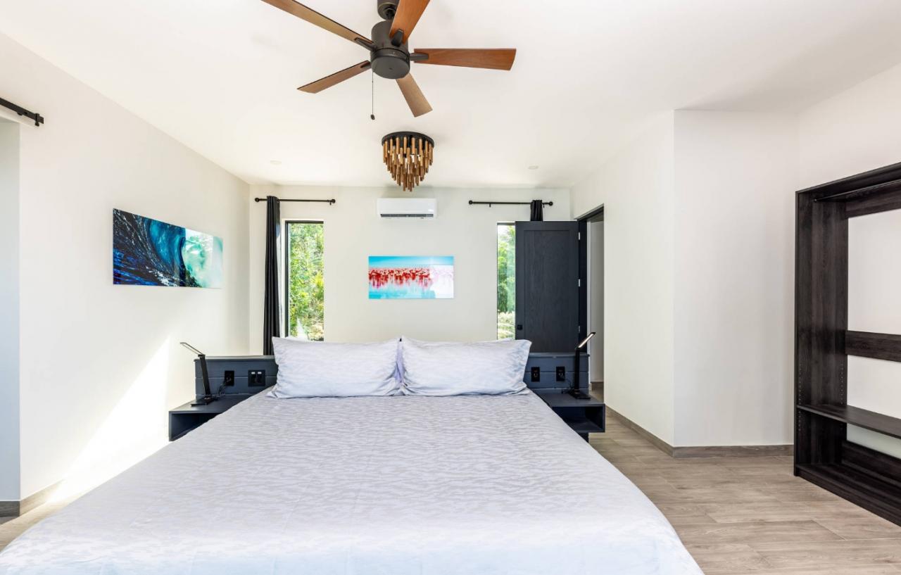 For beach enthusiasts, Sapodilla Bay and Taylor Bay are just minutes away, offering soft sand, calm shallow waters, and stunning sunsets, ideal for floating, playing, or morning walks. Guests are provided with a cooler, folding beach chairs, and a beach umbrella for added comfort. With its combination of modern elegance, private beachfront access, and proximity to Provo’s natural wonders, Beach Escapes Villa One provides a perfect island retreat for a peaceful and unforgettable Turks and Caicos vacation.