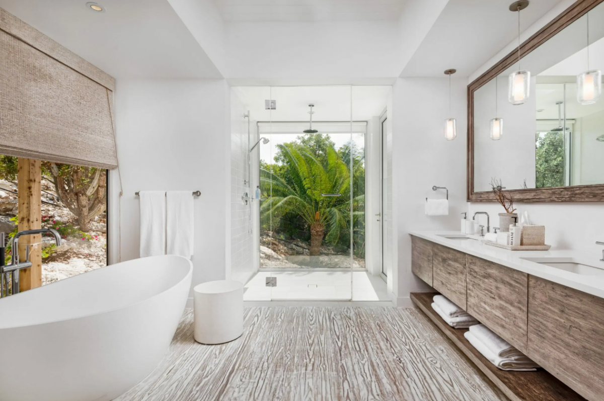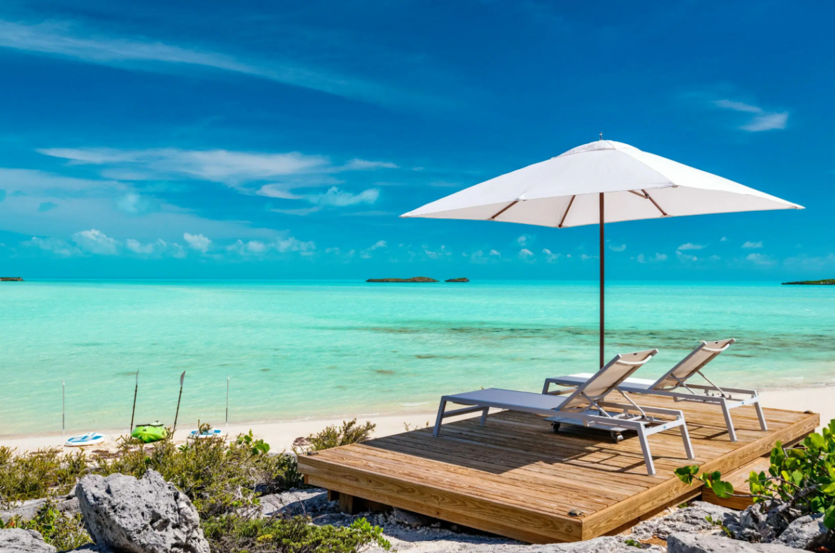 As you walk down to the beach from the pool deck, guests have a manicured and lit walkway to the beach as well as beach deck with chairs and ample shade. The beach will feel like your own private stretch of sand, with next to no foot traffic from neighboring homes. Bristol Bliss’ location on the South side of the island, mean guests can enjoy the shallow and clear Caicos Banks. For as far as the eye can see (roughly 50 miles out and 90 miles across) the depth does not exceed 8′ to 10′. To enhance your luxury beachfront experience, Bristol Bliss also provides guests with a double kayak and two paddleboards to use throughout their stay complimentary. The small island ‘Cays’ located in the ocean roughly a quarter mile in front of the villa make for a kayakers dream location to explore.