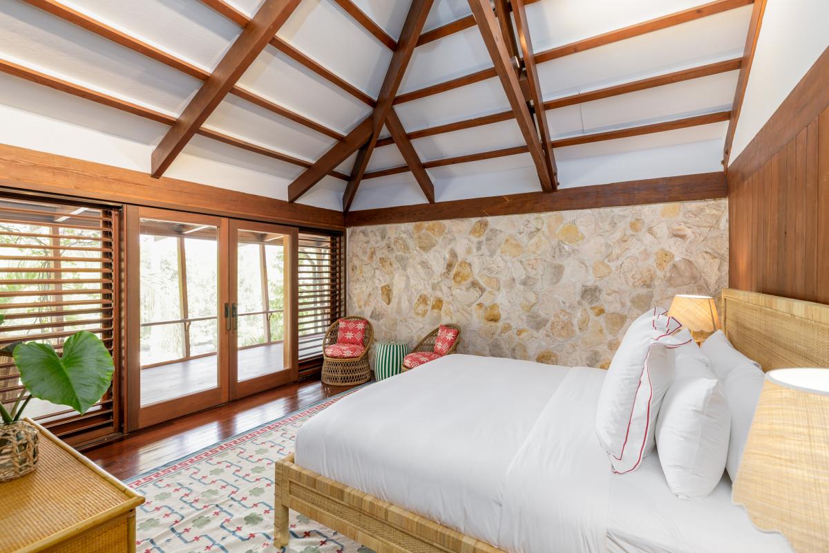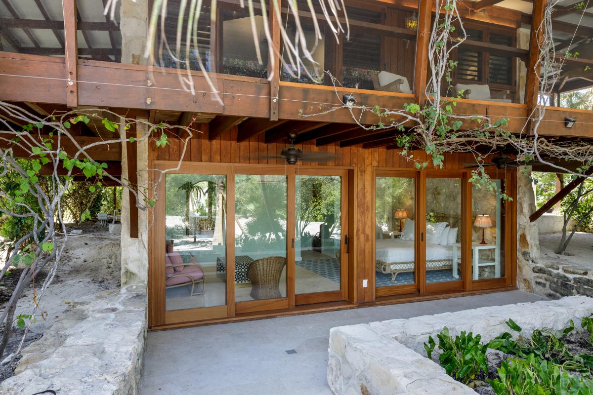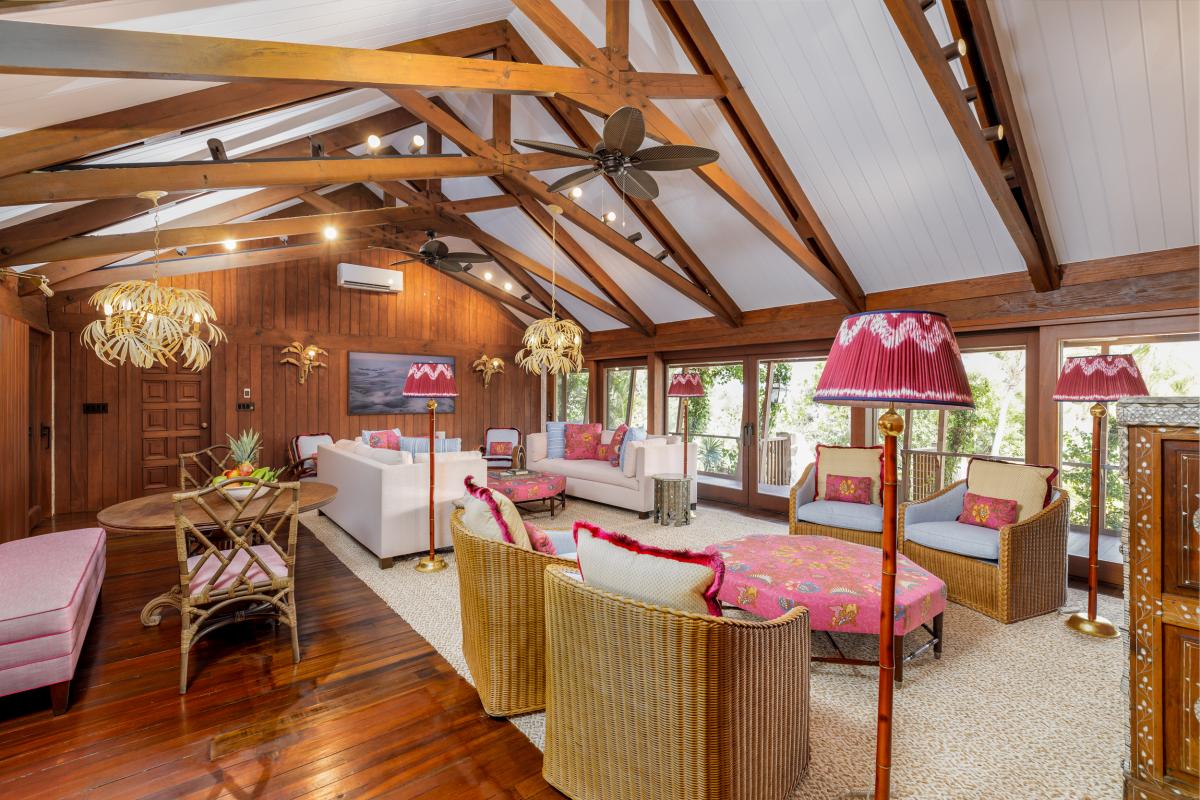 Nestled within four acres of lush tropical landscaping and boasting 600 feet of Grace Bay beach frontage, The Catch is an exquisite Turks and Caicos villa island retreat exuding Caribbean charm. Recently revitalized with a multi-million-dollar refurbishment, this private residence offers an exclusive opportunity to experience the blend of authentic Caribbean style and modern luxury. With a design inspired by a tranquil Balinese retreat, the villa features original hardwood paneling, pitched beamed roofs, and natural tones, complemented by vibrant soft furnishings. The main house hosts four serene bedrooms, while a dockside guest cottage adds a fifth room with bunk beds, perfect for additional guests.
