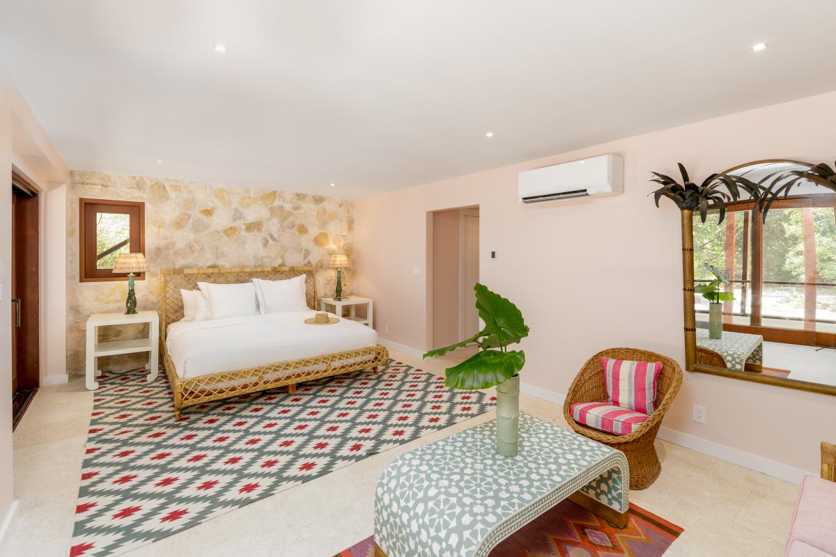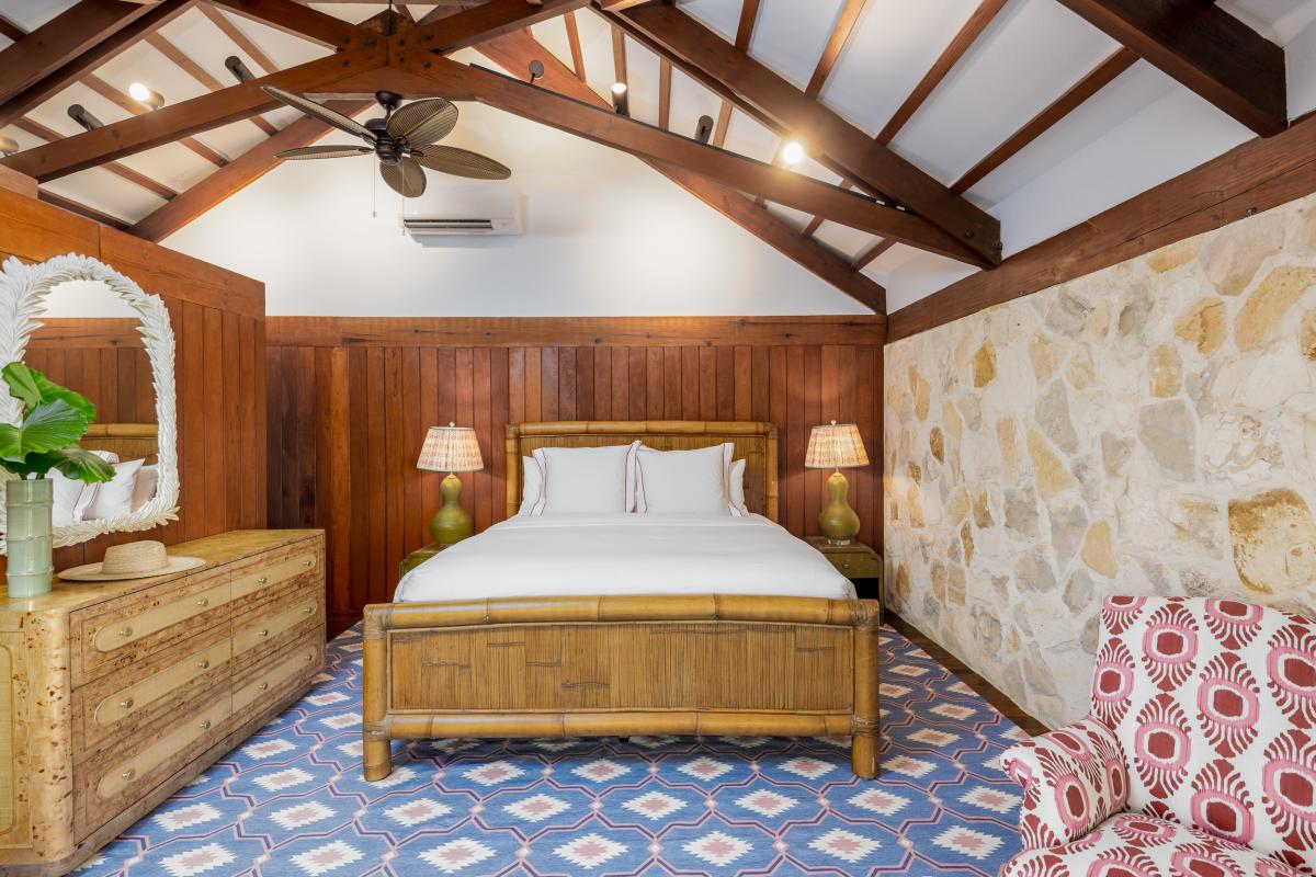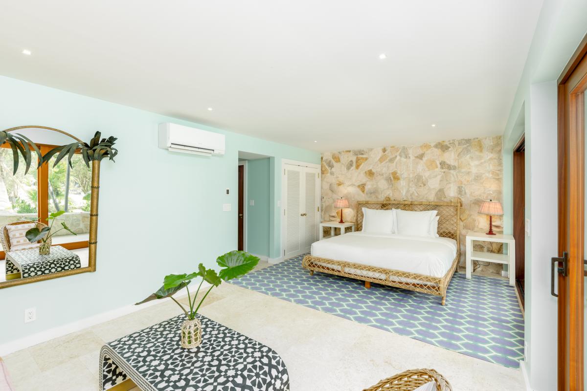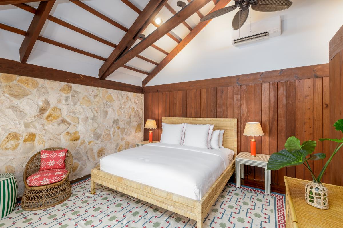 Nestled within four acres of lush tropical landscaping and boasting 600 feet of Grace Bay beach frontage, The Catch is an exquisite Turks and Caicos villa island retreat exuding Caribbean charm. Recently revitalized with a multi-million-dollar refurbishment, this private residence offers an exclusive opportunity to experience the blend of authentic Caribbean style and modern luxury. With a design inspired by a tranquil Balinese retreat, the villa features original hardwood paneling, pitched beamed roofs, and natural tones, complemented by vibrant soft furnishings. The main house hosts four serene bedrooms, while a dockside guest cottage adds a fifth room with bunk beds, perfect for additional guests.