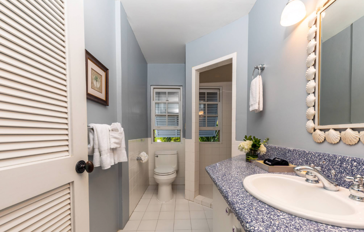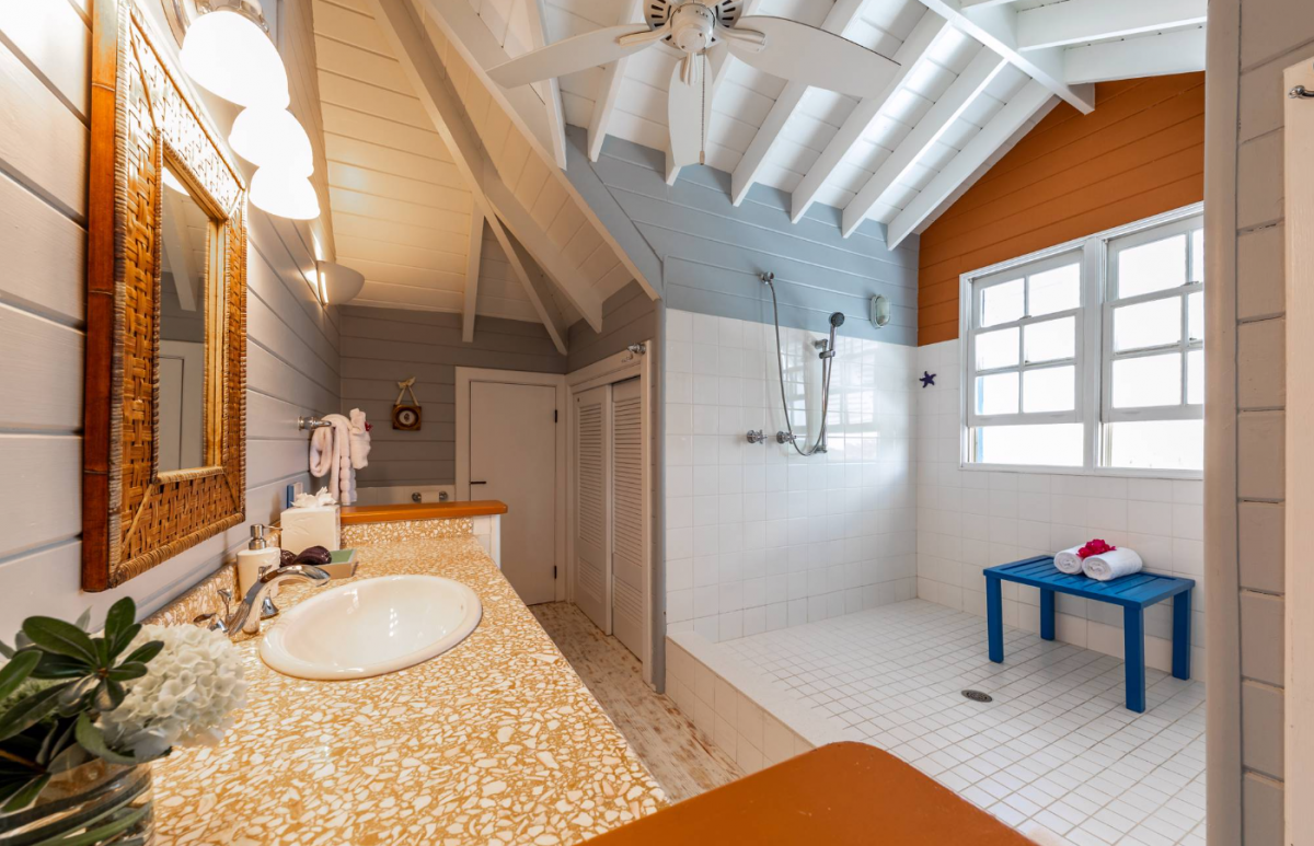 The upper level has the master suite with a balcony overlooking the bay, sunken bathtub, bathroom and a large two headed shower. All the charm of a luxury Caribbean vacation home is to be found at Etoile de Mer.