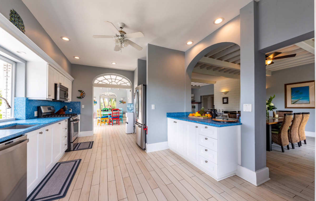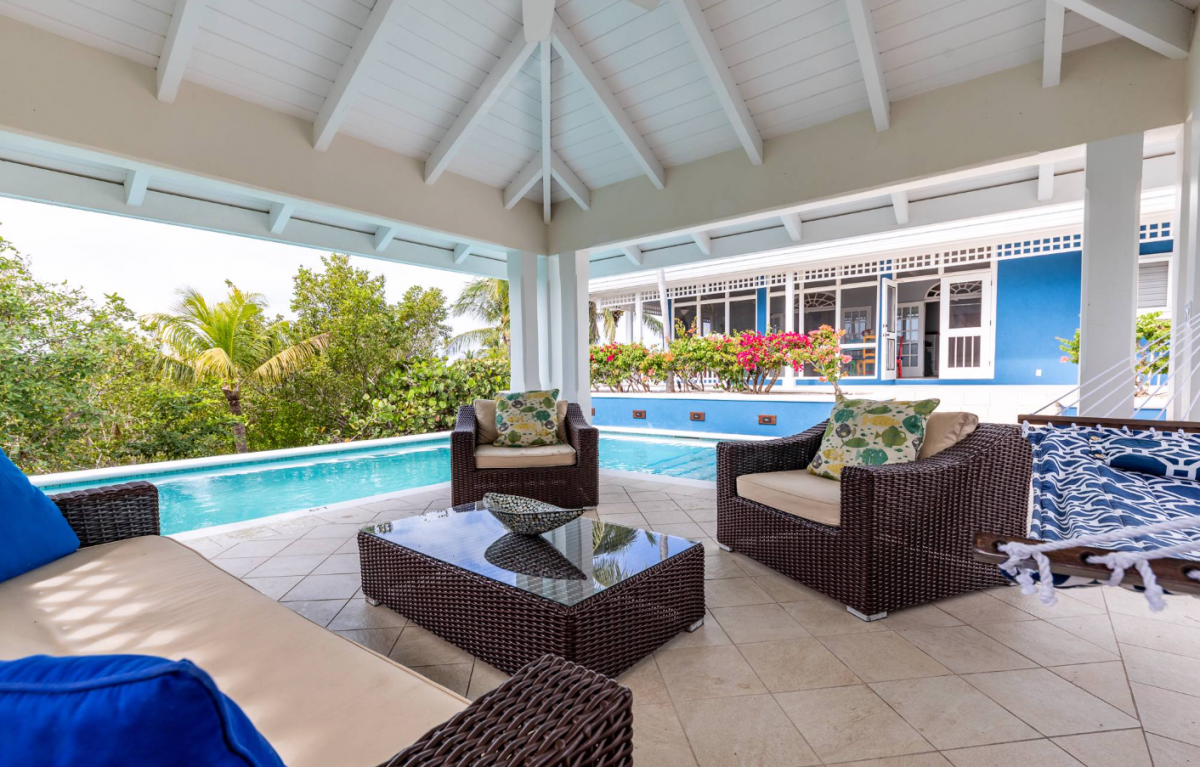 Etoile de Mer is surrounded by palm trees on an acre of land on Sunset Bay one of the islands prettiest beaches and known for its privacy. Custom designed to catch the leeward breezes which gently waft through the house, Etoile de Mer feels more like a lovely home, not a rental. Divide your time between the beach, just steps away, and the large fresh water pool, gazebo and deck at Etoile. The gentle tides of Sunset Bay offer on opportunity to wade, swim, snorkel or kayak. The fine white sands bid you to take long walks or sit and watch the sunset.