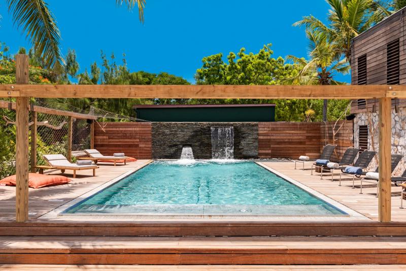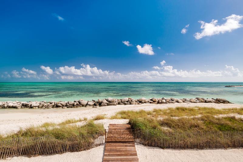 Silver Sands Villa is a spectacular, spacious 8 bedroom family home has been extended and renovated with love, a European design flare and imagination. It features three master bedrooms, two with ocean views and balconies overlooking the beach, and one garden view master. The living area along with indoor and outdoor dining are situated on the upper floor with panoramic views of the turquoise waters. For an even more spectacular view venture to the third floor viewing deck for quiet relaxation and sunsets.