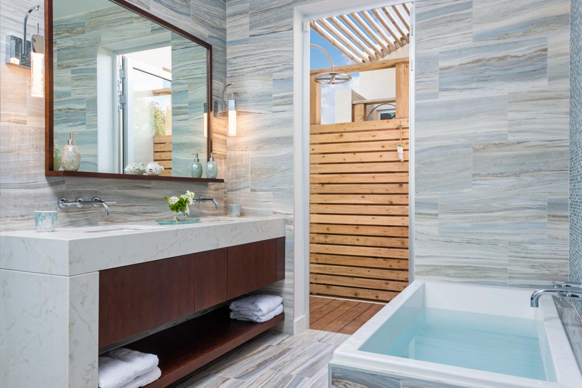 Villa Alinna is a single level that has a shallow pool with easy access to the ocean, this makes this villa perfect for families with young children and/or seniors. There is an annex above the garage, this offers families a game room with an exterior patio equipped with an outdoor pool table. Villa Alinna offers guests a mini-game room, equipped with weights, a treadmill, and a Bowflex machine. If guests wish, the annex may be converted into an additional suite with an ensuite bathroom and ocean views upon prior request.