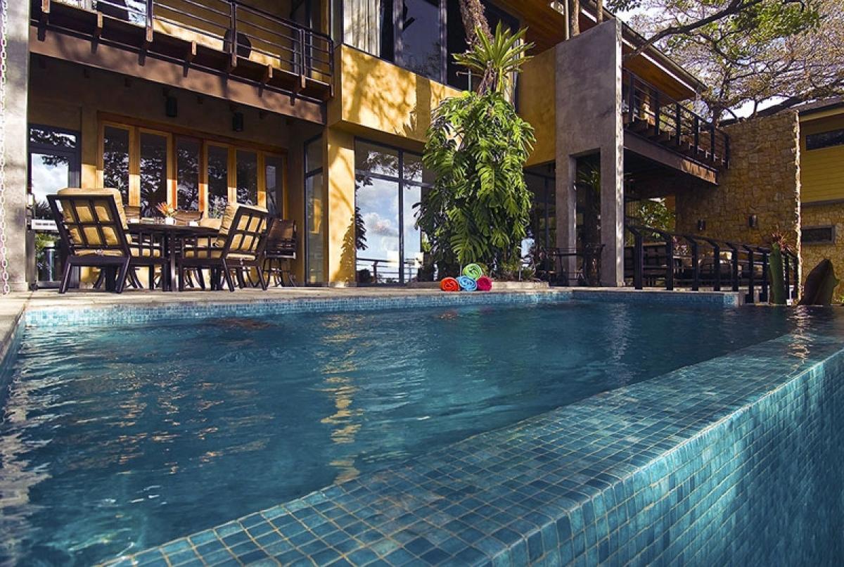 This beautiful 4 bedroom, 4.5 bath luxury home provides the ultimate in tropical living. Complete with bedroom suites separated from the main social areas, you are ensured privacy and comfort throughout your stay. Casa Feliz provides full-time housekeeping, wireless internet and an infinity-edge pool overlooking the Pacific. It is also complete with a bi-folding window creating a pool bar for you and your guests. You will enjoy fully air-conditioned interior living spaces while floor to ceiling glass doors and windows throughout the home provide optimum nature observing opportunities. Additionally, your exterior covered walkways allow you the possibility to appreciate an exotic flower or watch a monkey jumping from tree to tree. This home is perfect for you to soak up the sun right up until sunset, barbecue, observe the exotic wildlife or just experience a little rest and relaxation. Casa Feliz is decorator finished and provides top-of-the-line bedding and furnishings to ensure an unforgettable stay.