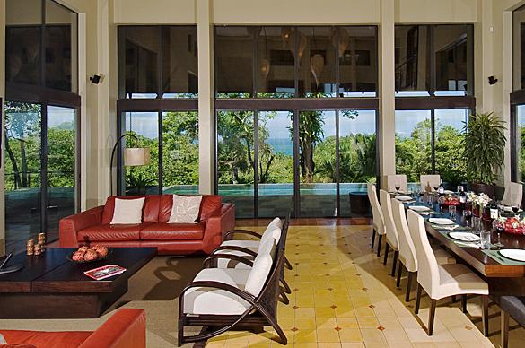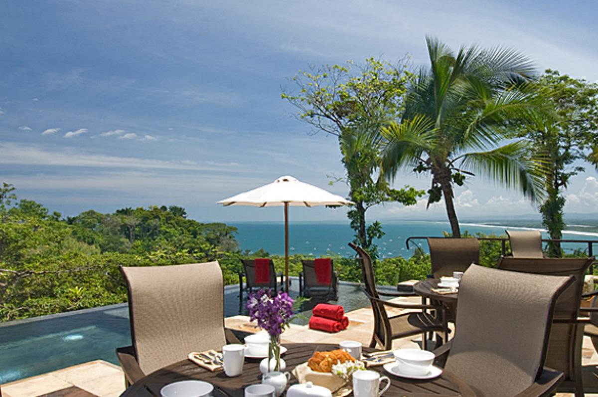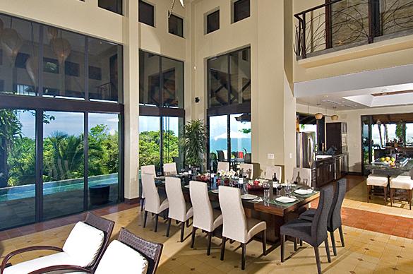 Villa Paraiso is a gorgeous 5 bedroom, 5.5 bathroom villa that is set in a most private and tranquil atmosphere. Located in La Reserva Gated Community Manuel Antonio, this 8,500 square foot property has the most magnificent ocean, mountain and rain forest views. Rated Top Vacation Rental 2012 by Trip Advisor, Villa Paraiso is decorated so exquisitely. The furniture was custom designed for the home. The gourmet kitchen is a chef's dream. And there is even another state of the art outdoor kitchen with a grill area. The large infinity pool and lush gardens make the outdoors so private and relaxing.