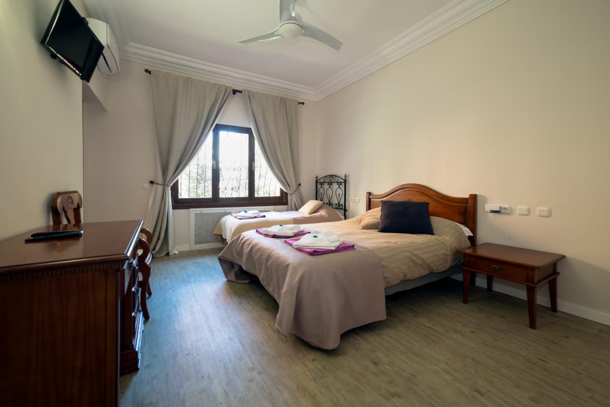BEDROOM 4: Double bed plus Twin bed. Access to shared patio with pool, terrace and sea views. En-suite bathroom with tub, shower and bidet.