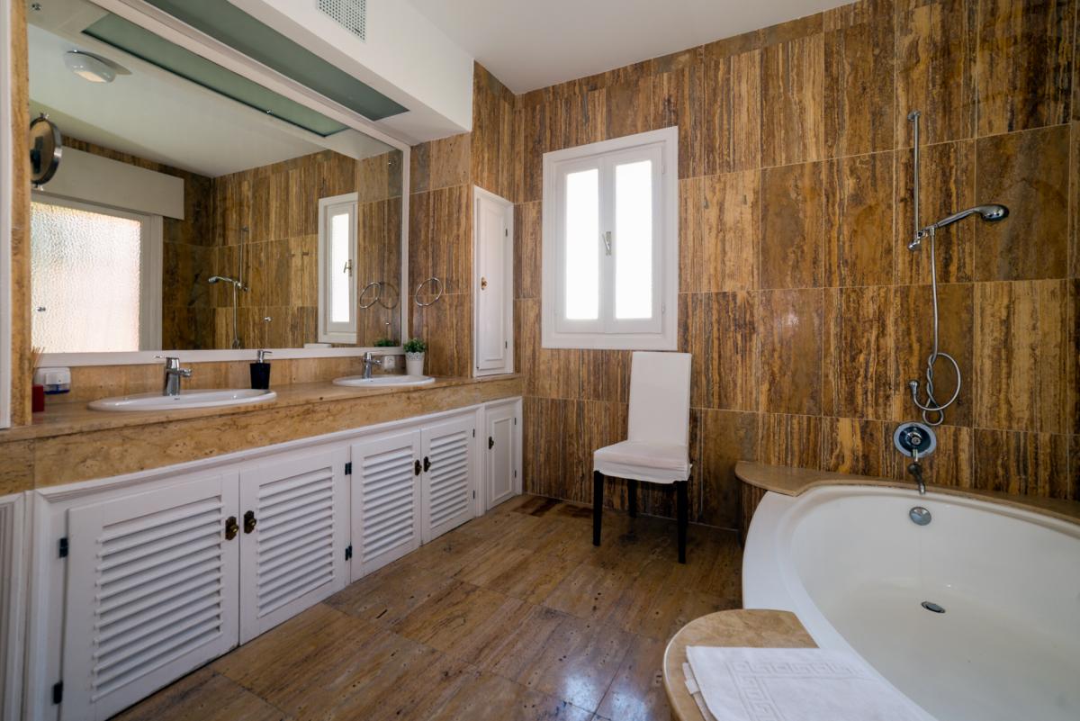 MASTER SUITE 1King-size bed, Twin bed plus sofa bed which can sleep two. Fireplace. Access to a shared patio with sea, garden and golf course views. En-suite bathroom with his ‘n hers WCs, tub, shower and bidet. Bathroom has access to shared patio.