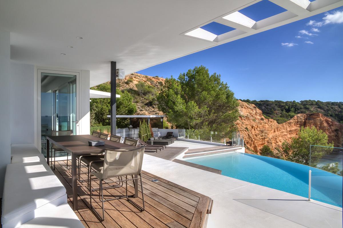Located in Vista Alegre, this seaside villa is surrounded by multiple terraces and lounge areas, making it the ideal home from which to enjoy all of the perks that the Mediterranean has to offer. Originally conceived by renowned architect Luis Gascon, the home in its current state was enhanced by internationally recognized architect Guillermo Bañares.