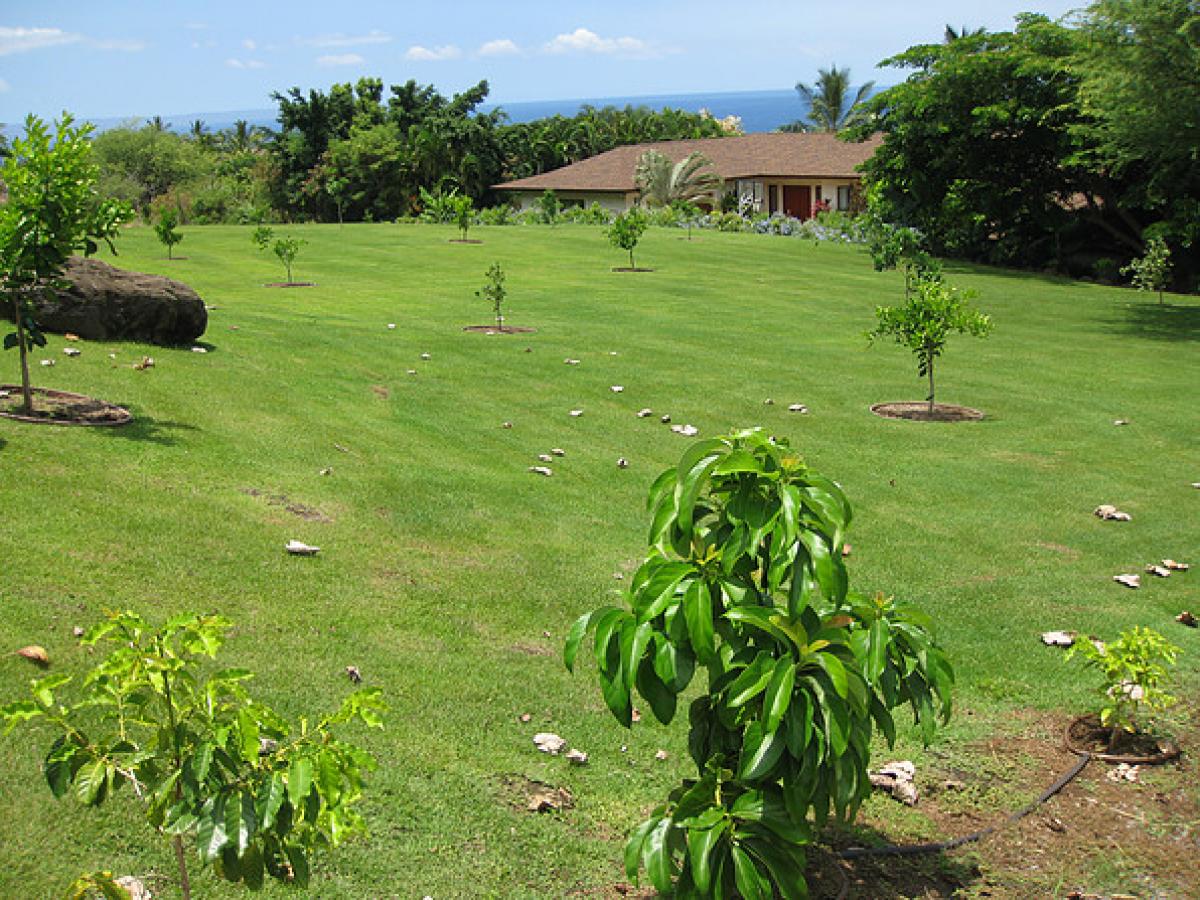 Help yourself to a rotating availability of local banana, papaya, avocado, orange, lime, tangerine, or lemon. Massive lawn areas drape the main house and cottage, and provide ample grounds for children to run and play. Children are loved and welcome! There is an outdoor hammock to relax on, propane tiki torches for night time, and a large outdoor table for family meals or celebrations. Walk amidst the outdoor collection of mature local foliage, including plumeria trees, natal plum, and coconut palms.