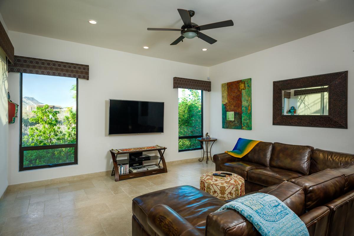 The infinity pool with its breathtaking view of the Sea of Cortez has two wading areas, a hot tub and a full-length lap pool. Sit under the beautiful palapa for margaritas and watch the whales as they migrate with their young. In addition, the house has a fire pit, a barbecue, ping-pong, tether ball, and a glorious mountain view terrace for yoga or evening drinks. This house is made for entertaining. The central living area has a fully equipped kitchen and breakfast bar and dining area for 10. Gather in the grand room or snuggle in for a movie in the cozy media room. If you do need to get some work done, the house is equipped with Wi-Fi and the office has a computer and a multifunctional printer and fax machine.