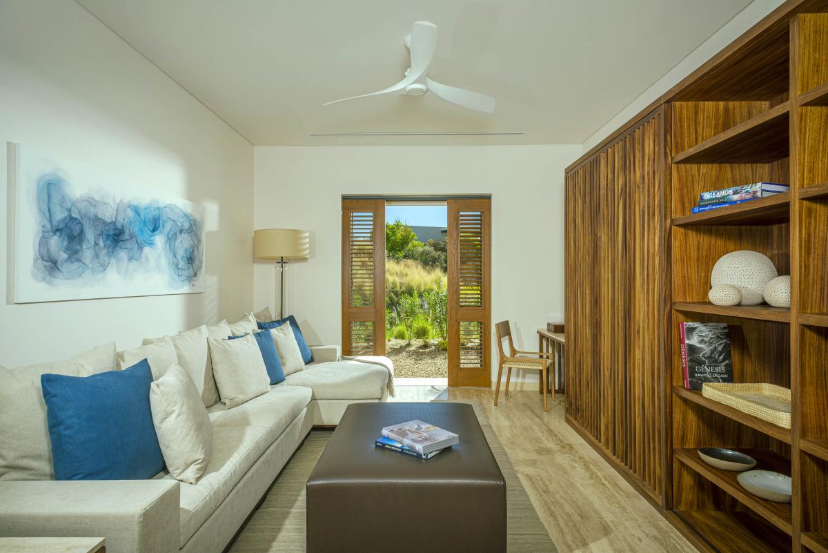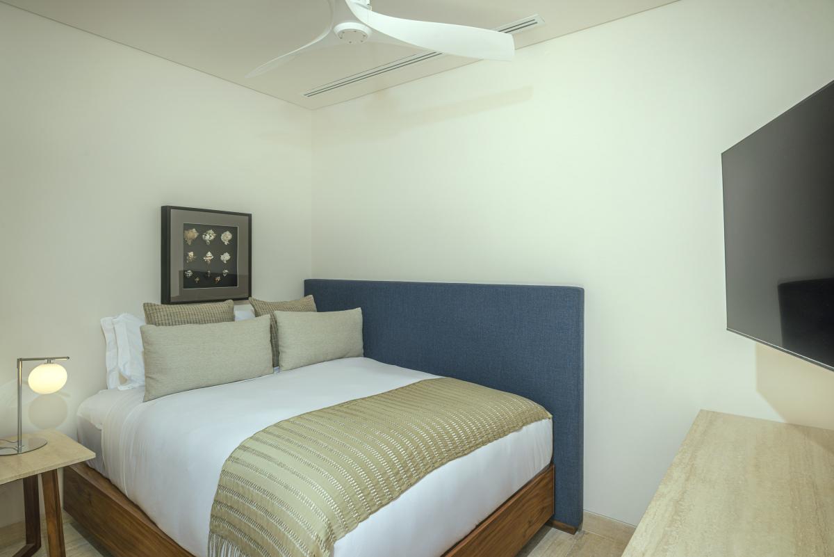 Primary Bedroom 2: King bed, full bathroom, ocean view, smart TV, safe, private terrace, ceiling fan, blackout curtains, AC