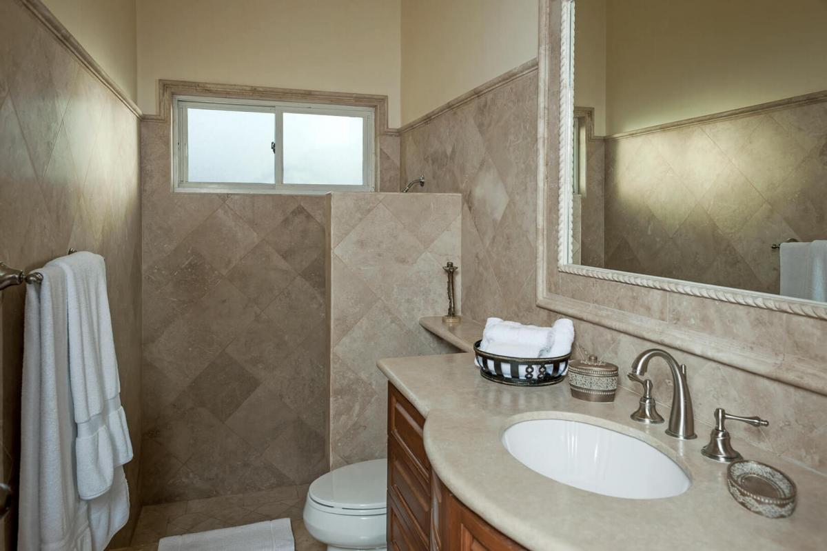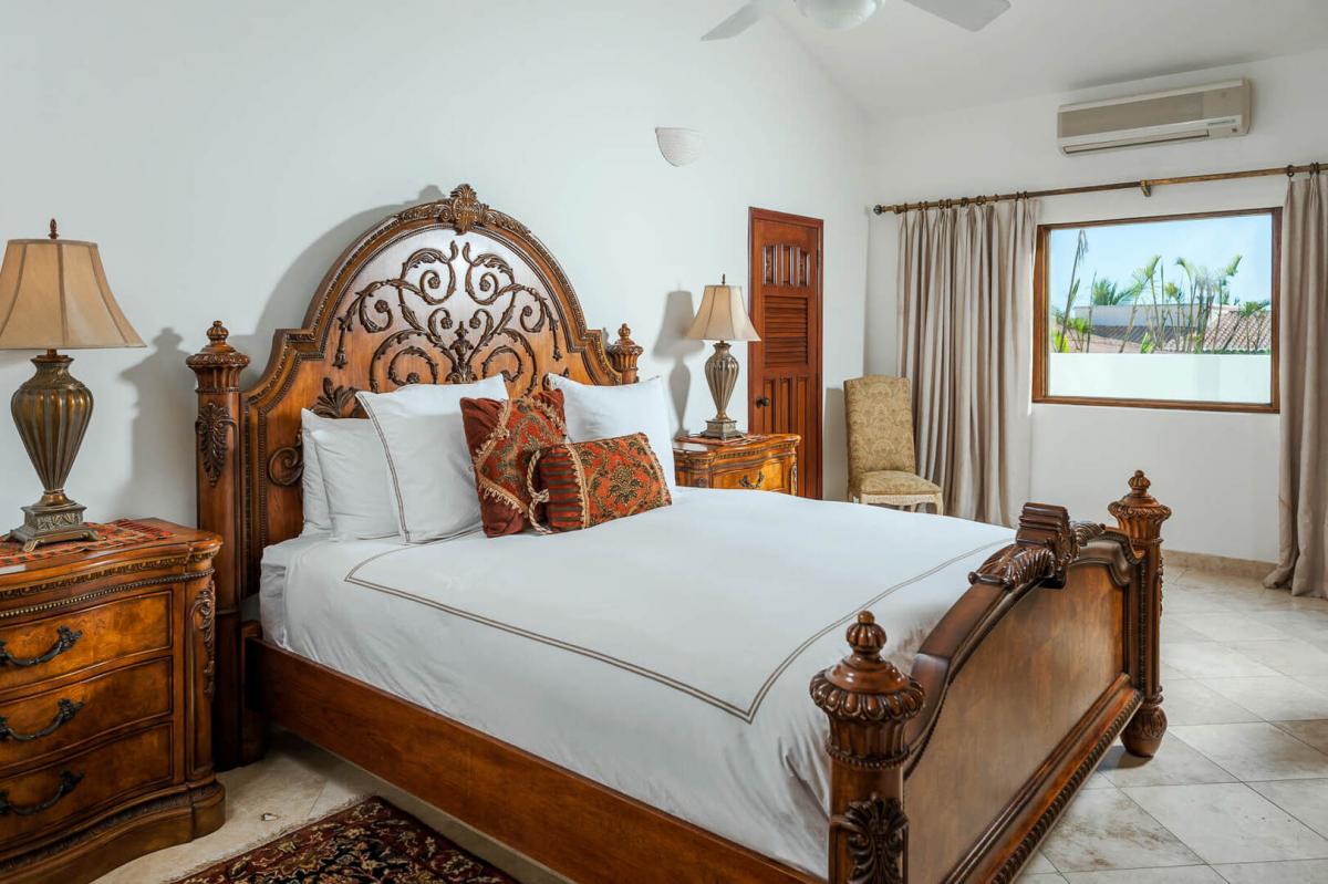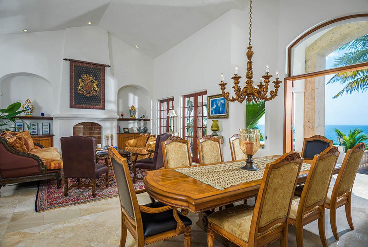 Villa Paraiso, blends European elegance with Mexican architecture, offering a luxurious retreat featuring Tuscan furnishings, brocades, and tapestries. The villa's design boasts high ceilings, marble floors, and open spaces highlighted by rich woods, white walls, and warm tones. The 7,000 square-foot villa includes five spacious bedrooms, each with a lavish ensuite bathroom, providing privacy and comfort for guests.