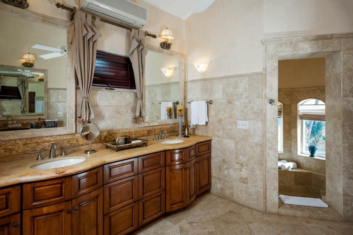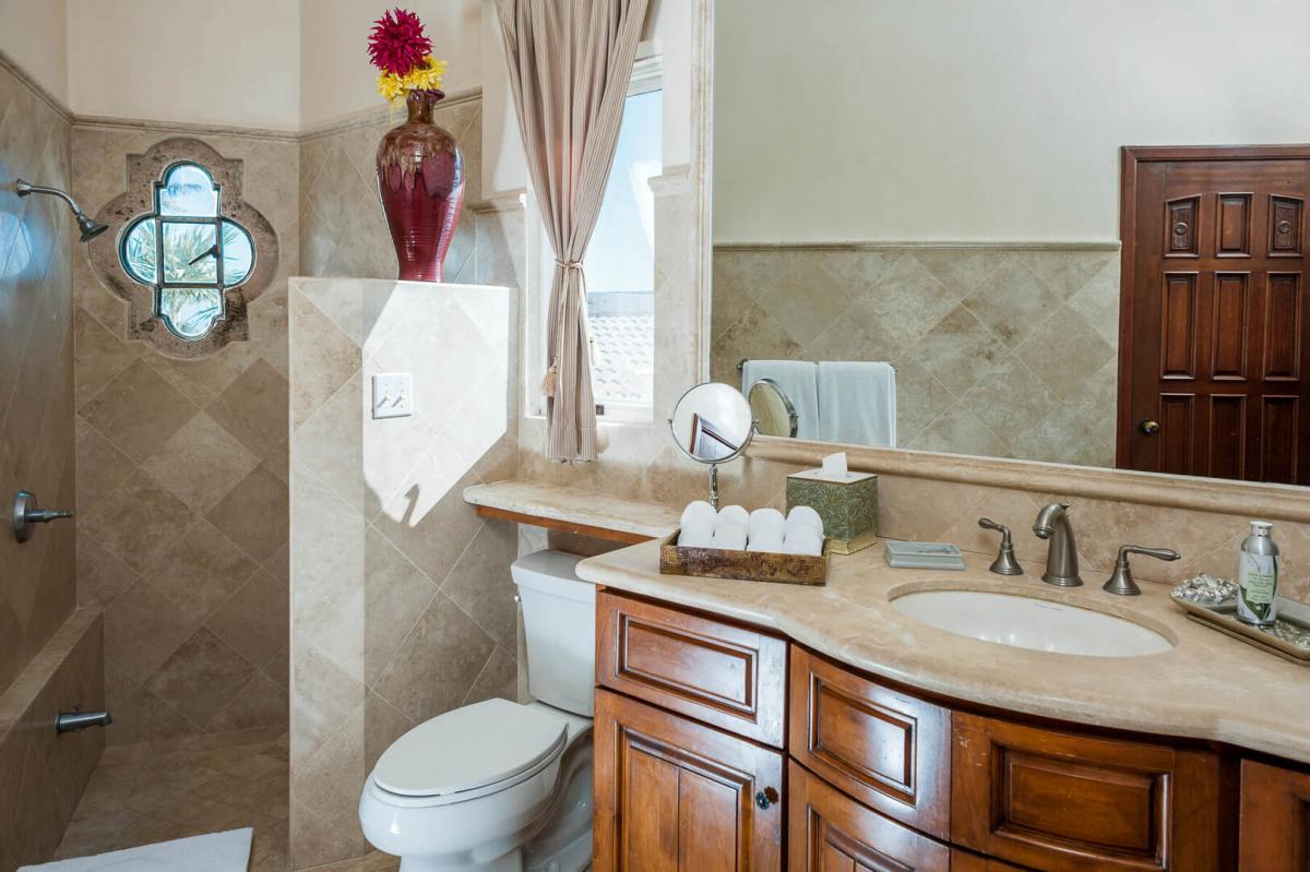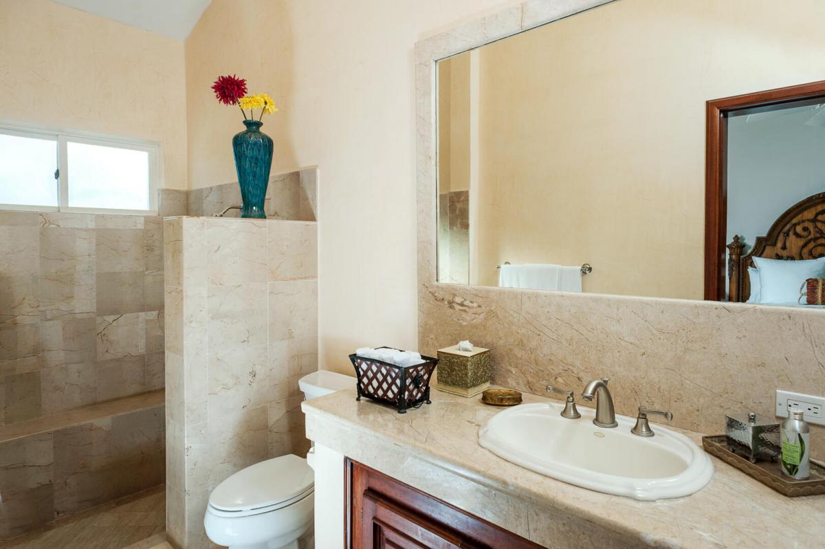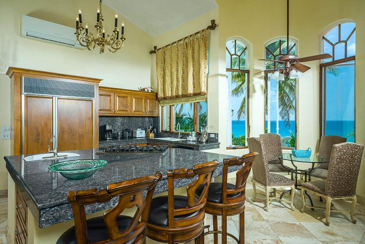 Villa Paraiso, blends European elegance with Mexican architecture, offering a luxurious retreat featuring Tuscan furnishings, brocades, and tapestries. The villa's design boasts high ceilings, marble floors, and open spaces highlighted by rich woods, white walls, and warm tones. The 7,000 square-foot villa includes five spacious bedrooms, each with a lavish ensuite bathroom, providing privacy and comfort for guests.