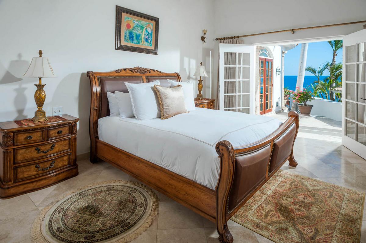 The layout of this Los Cabos villa is designed for both relaxation and socializing. The living and dining areas are adjacent to a gourmet kitchen on one side and an entertainment room on the other, allowing guests to enjoy different activities without interruption. The bedrooms, with King and Queen-sized beds, are luxuriously appointed, ensuring a private oasis for each guest during your Los Cabos vacation.