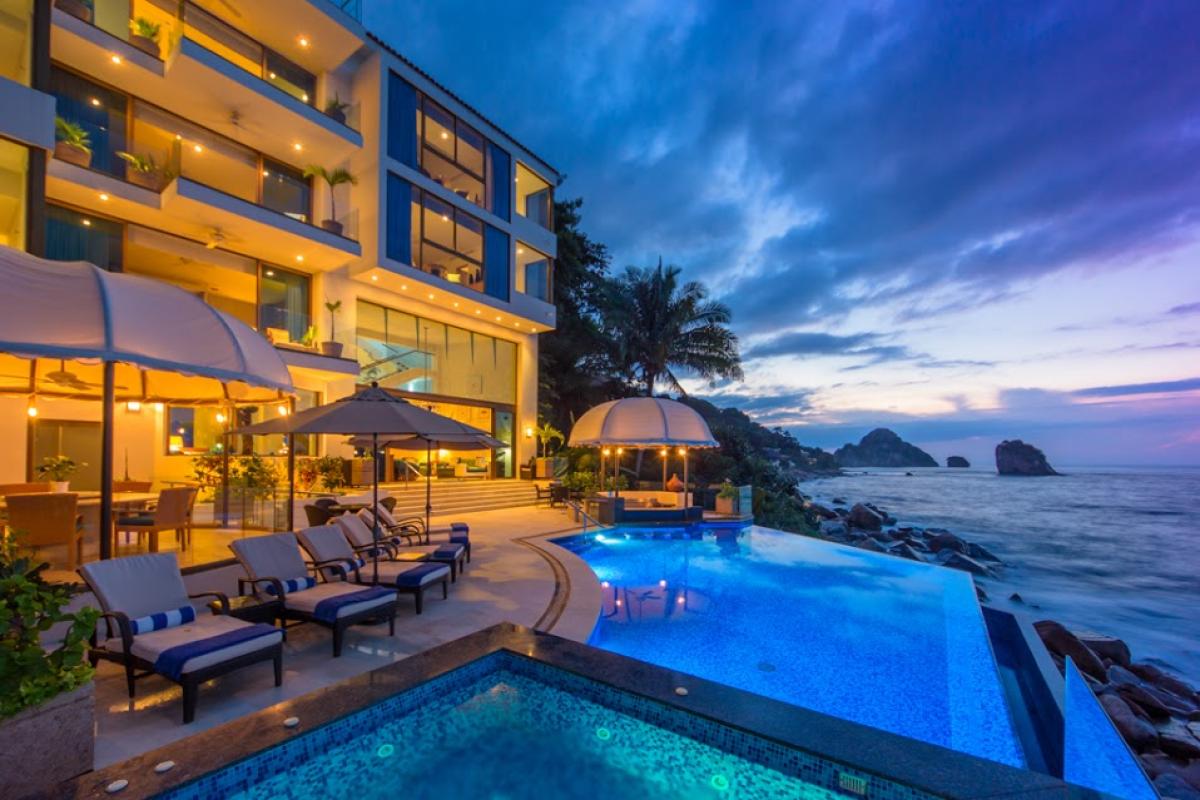 Casa Demae is truly a jewel. This luxurious oceanfront villa sits on the Mexican Riviera and exceeds all expectations. With over 10,000 square feet of living space, both indoor and outdoor, this spectacular Puerta Vallarta villa rental offers five star ocean view views.
