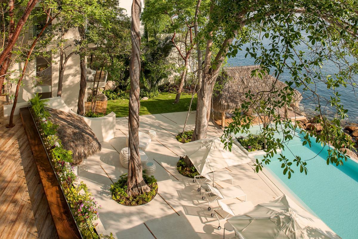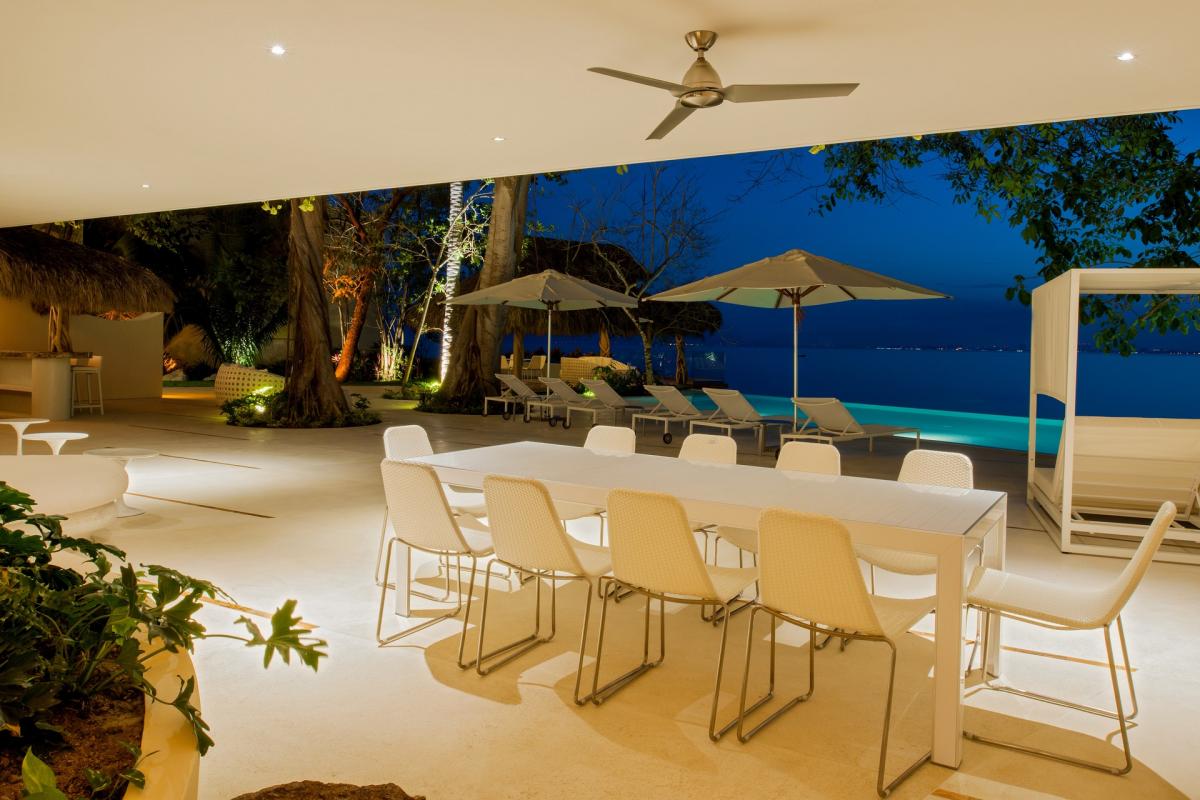 Casa Papelillos is a 13,000-square-foot oceanfront home that has five bedrooms, sleek contemporary style and indoor living spaces that seamlessly transition to outdoor terraces. It is located on the El Paredon Resort on Banderas Bay, meaning guests have access to the resort’s amenities. They also share perks like the daily maid and cook service.
