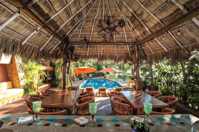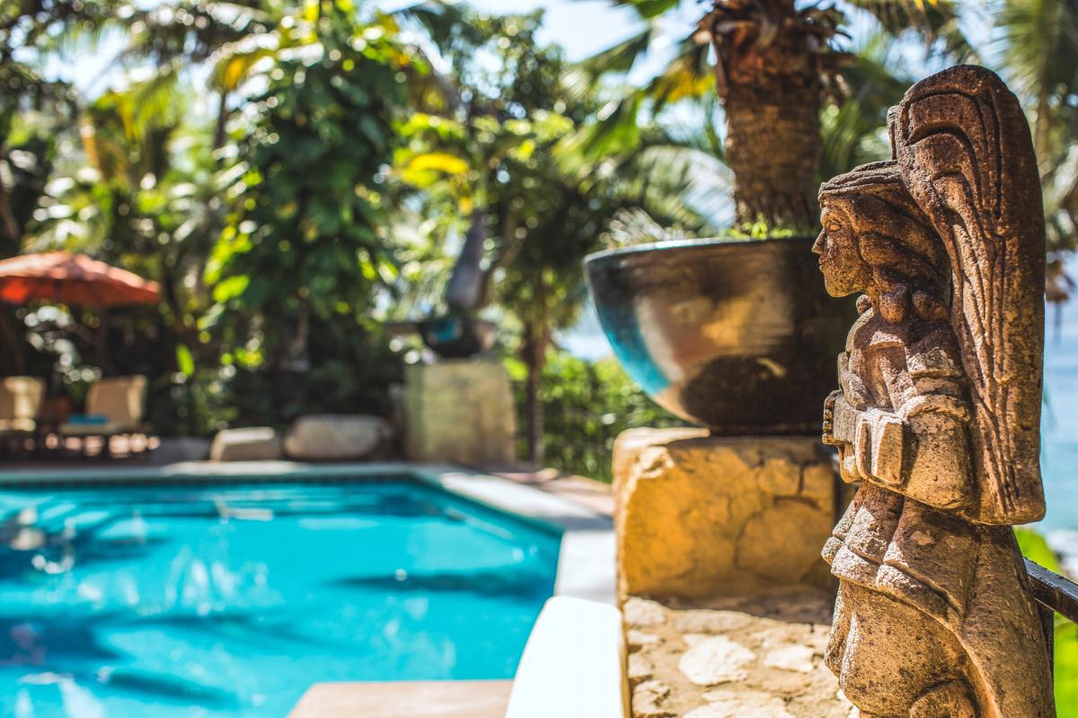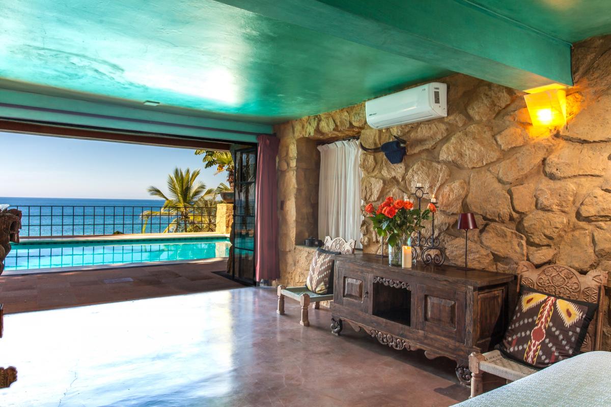 The fabulous pool and beach are the best features of this property. Located on one of the prettiest beaches on the Bay of Banderas, the tropical style pool cabana is the perfect setting for entertaining, featuring outdoor living area, bar and grill. Staff includes a pool waiter to serve blender drinks in the afternoon. The pool gardens make a nice zen spot for in-house spa treatments.