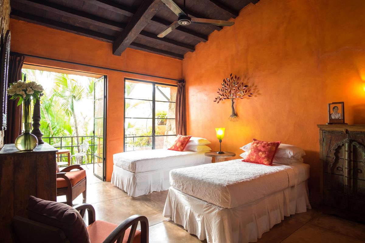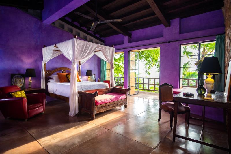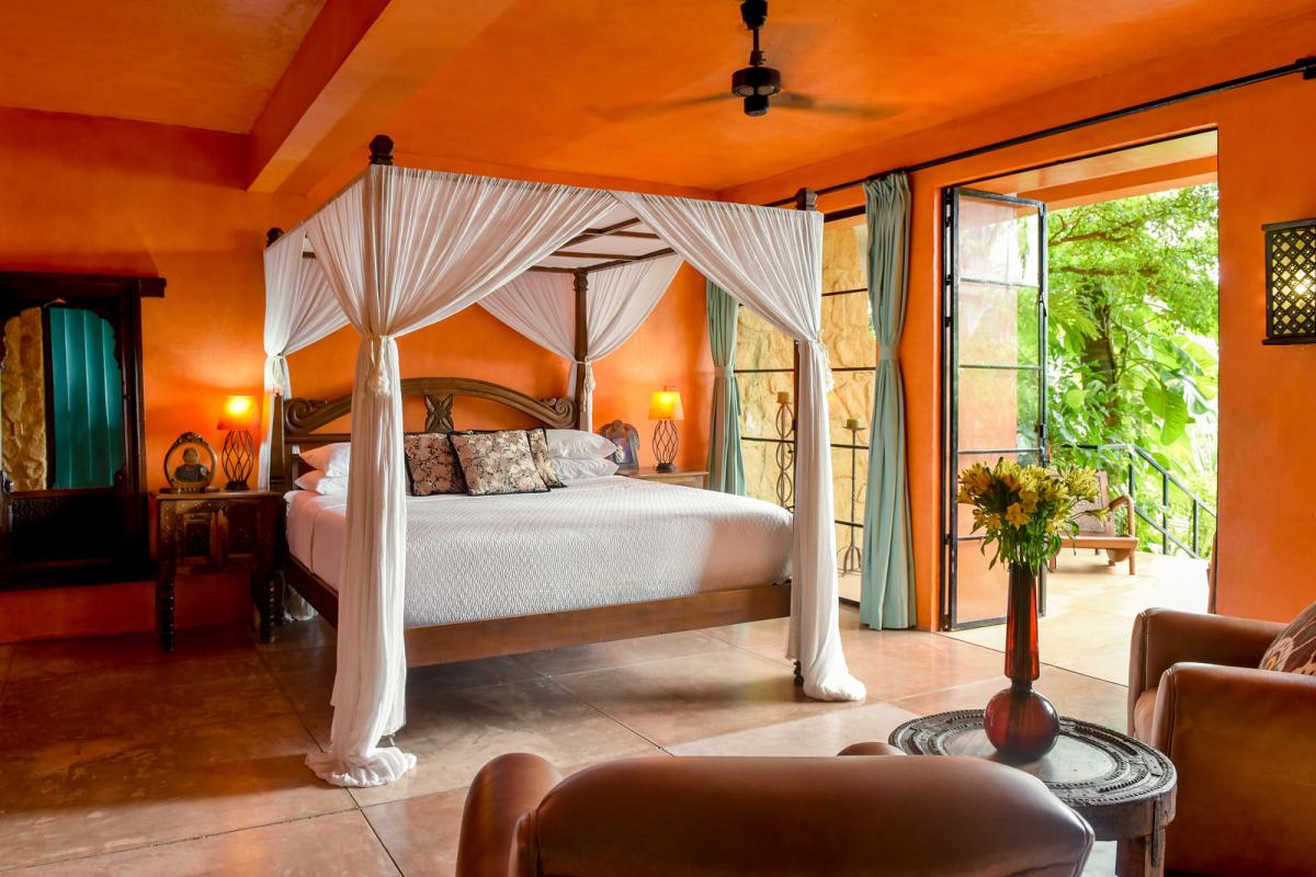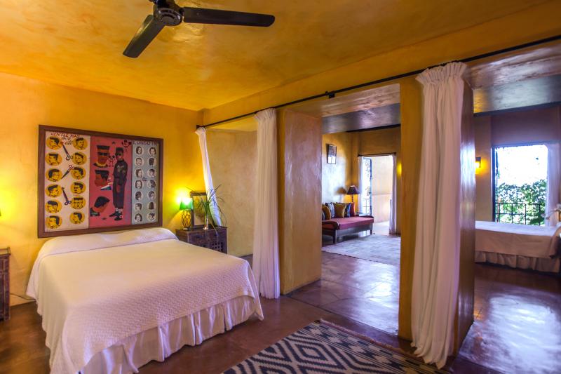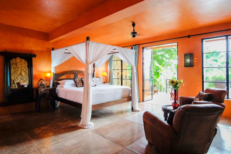 - Bedroom 7: king bed (can be converted into king bed), en suite bathroom, hair dryer, robes, toiletries, AC, ceiling fan, private terrace. The orange master suite is a large bedroom just one flight up from the Pool Terrace. This bedroom provides secluded ambiance and easy pool access.